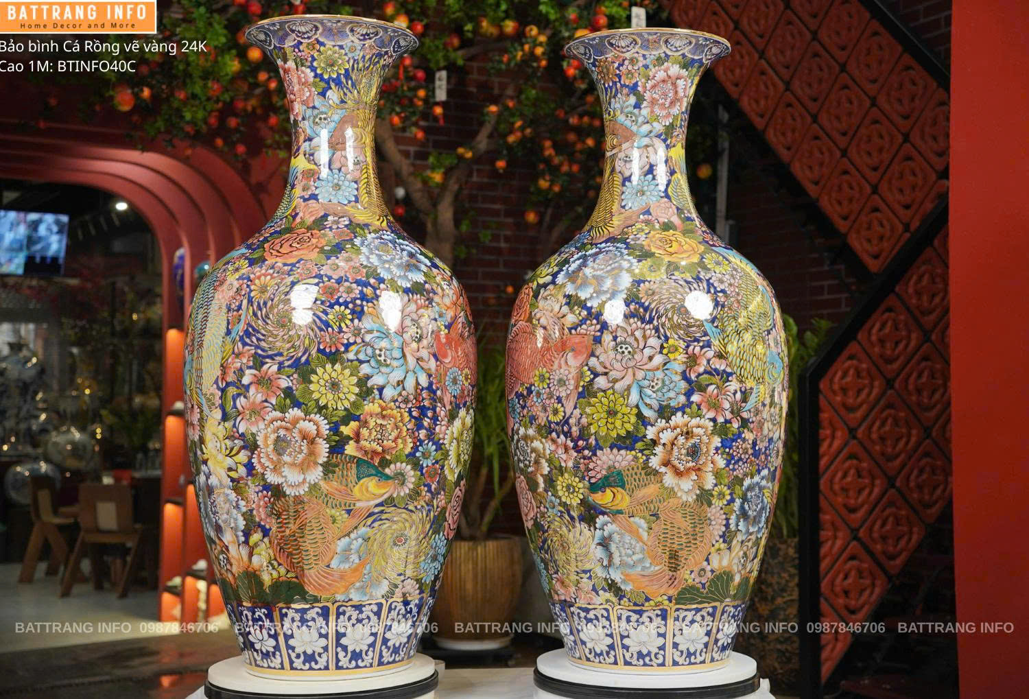 Bảo Bình Cá Rồng Cao 1m Vẽ Vàng 24K Cao Cấp – Tác Phẩm Phong Thủy Độc Tôn Từ Gốm Sứ Bát Tràng