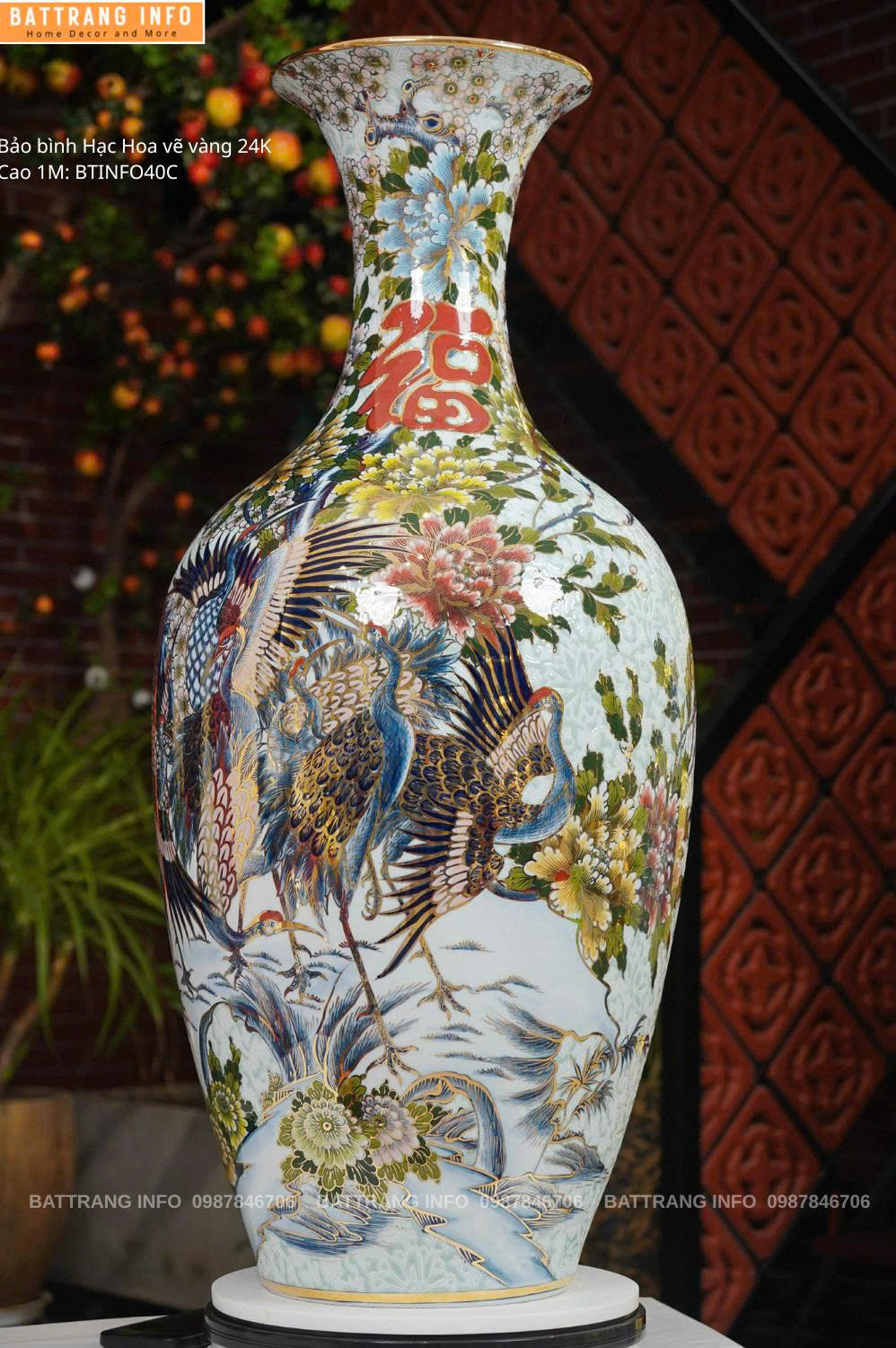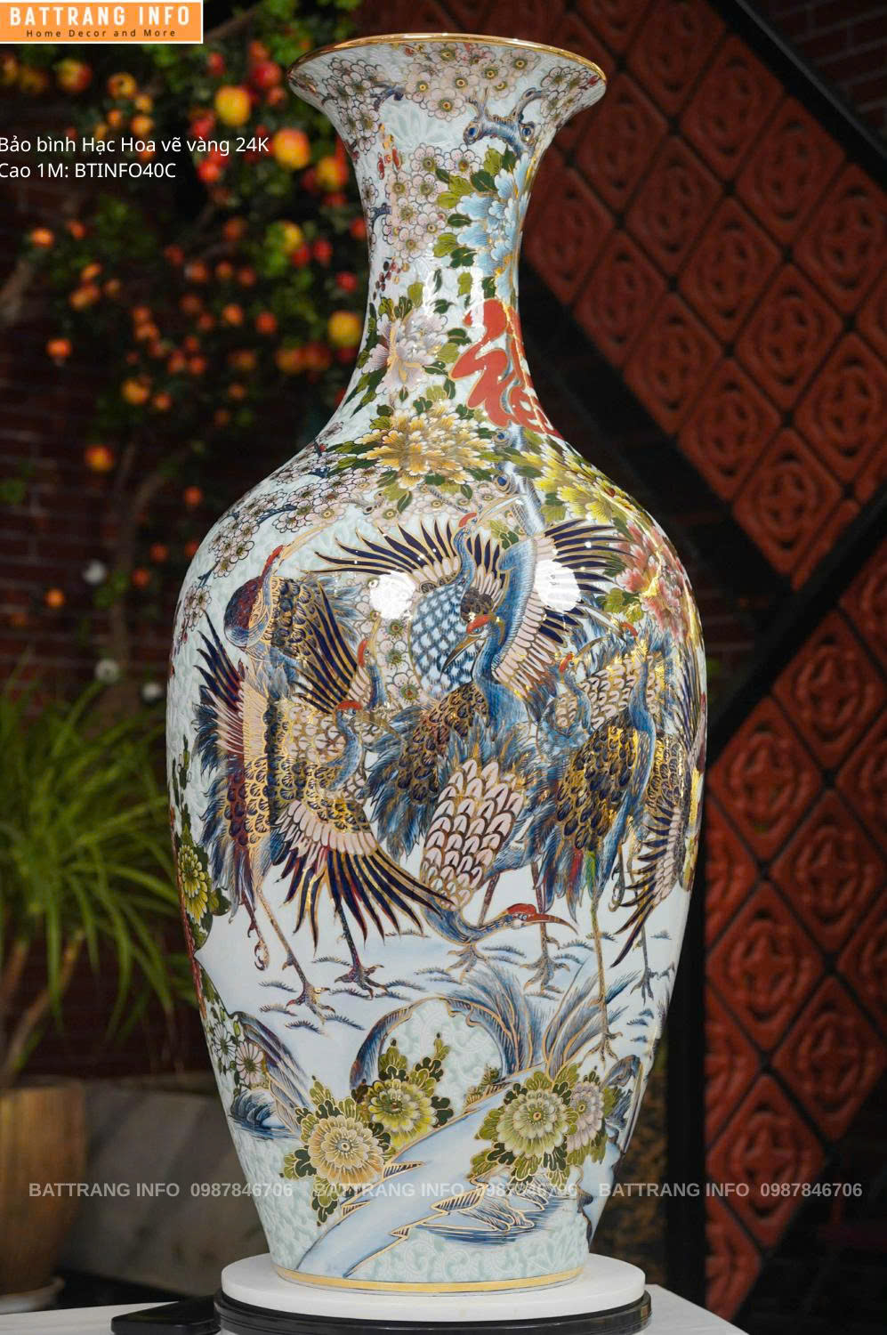 Bảo Bình Hạc Hoa Vẽ Vàng 24K Cao 1m – Hàng VIP Bát Tràng Đẳng Cấp Sang Trọng