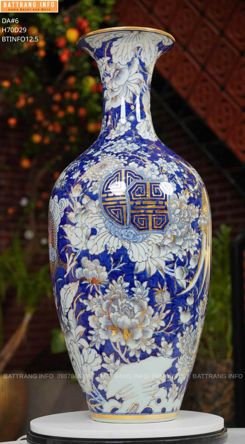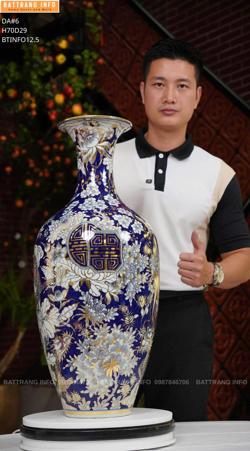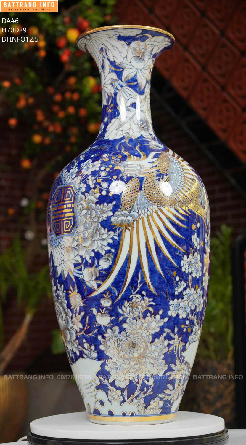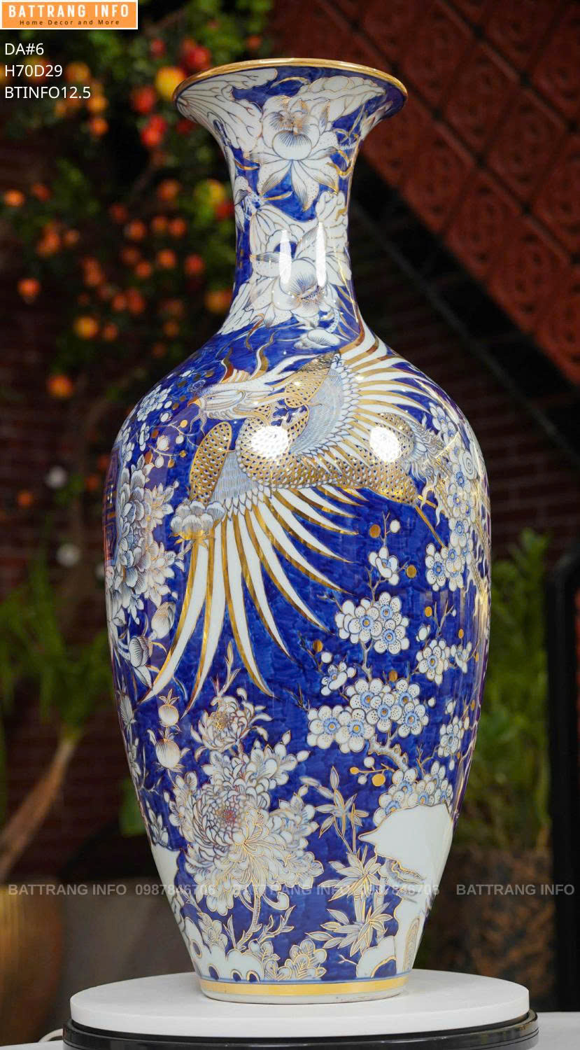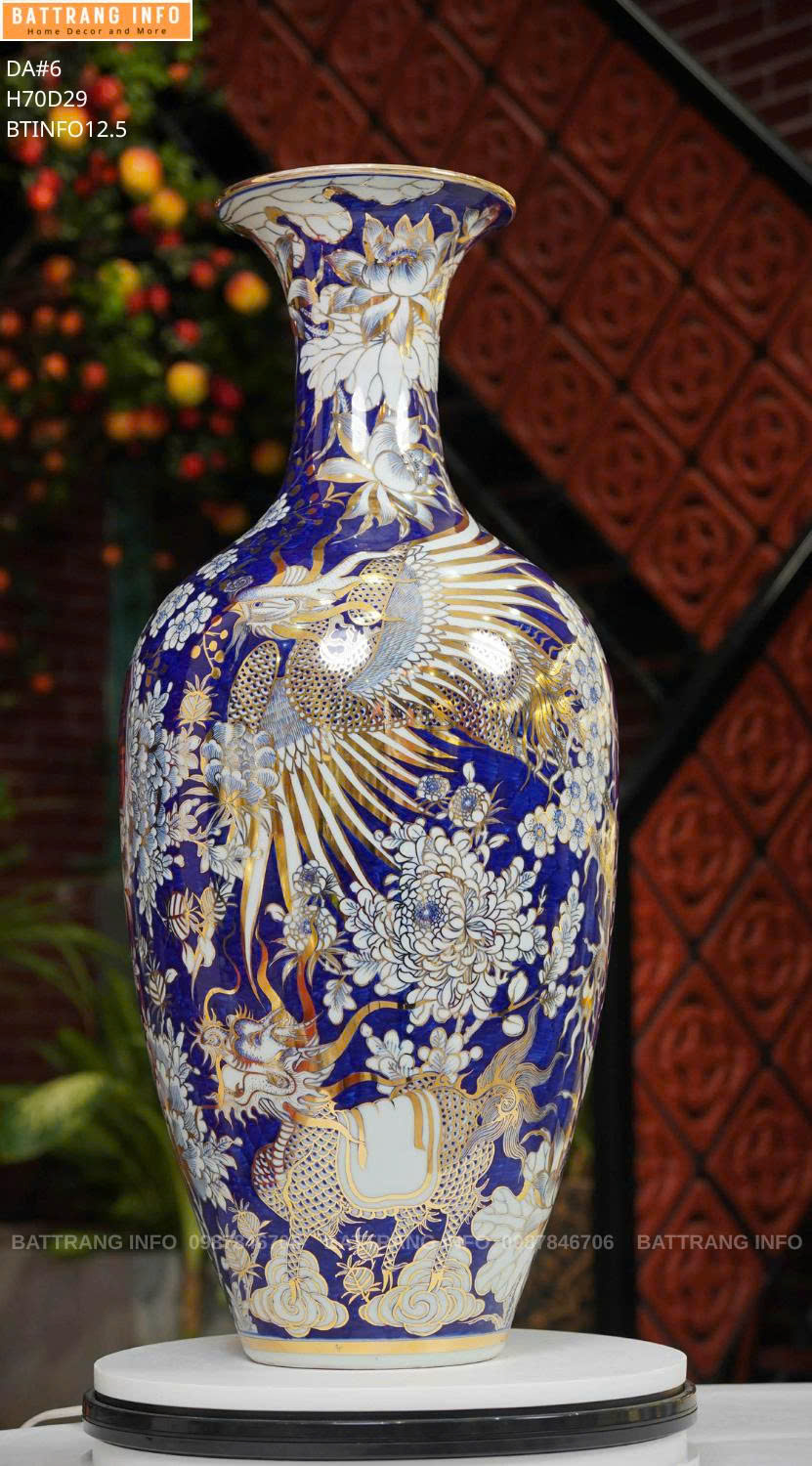 Bảo Bình Long Phụng Sum Vầy Men Lam Cao 70cm – Vẽ Vàng 24K Cao Cấp Bát Tràng