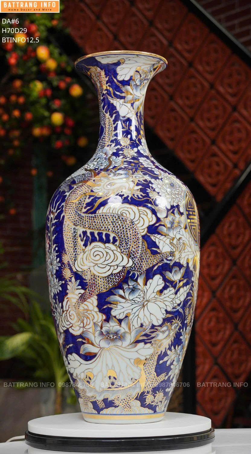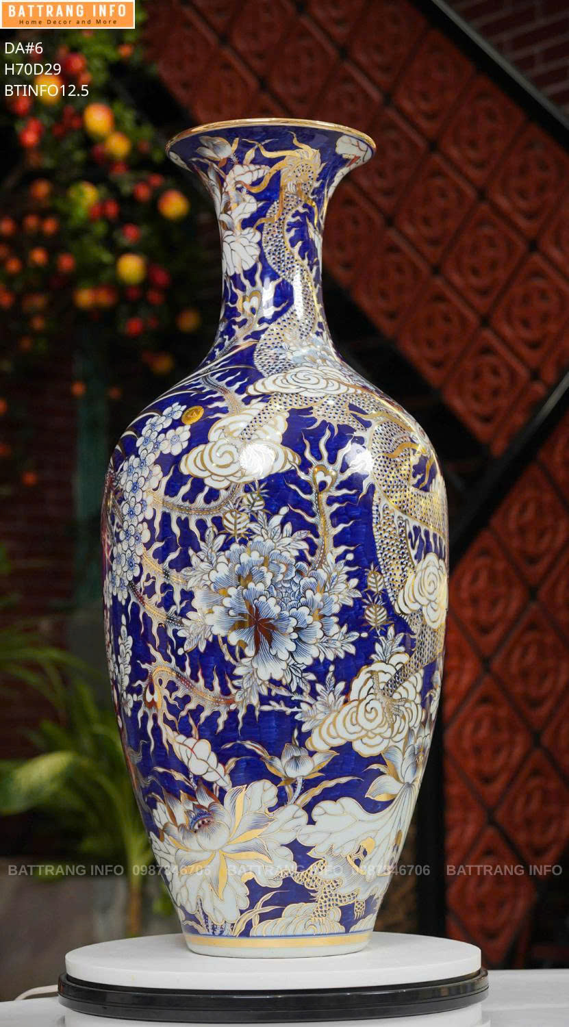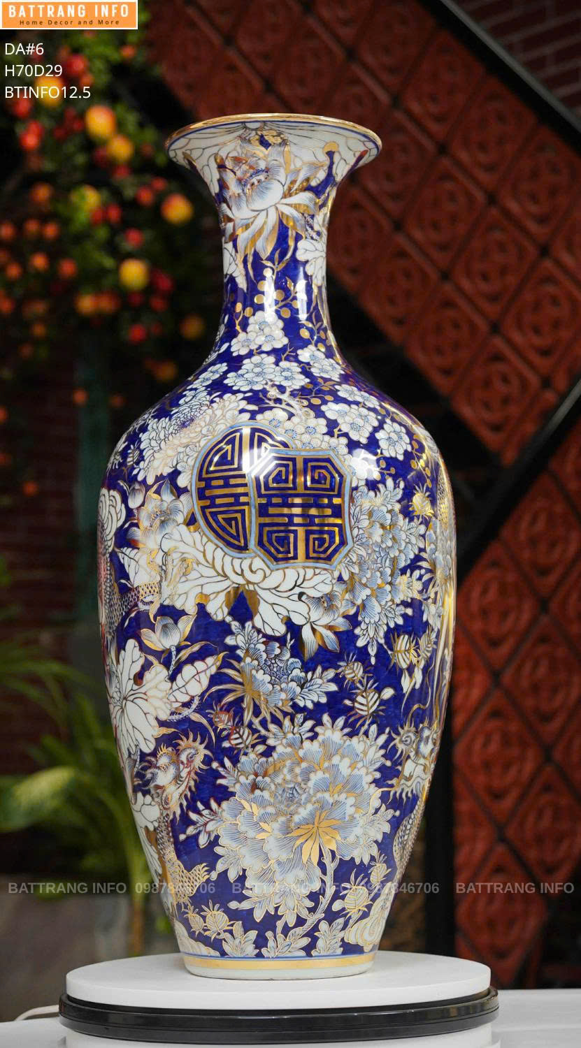 1. Giới thiệu Bảo bình Long Phụng sum vầy men lam 70cm vẽ vàng 24k