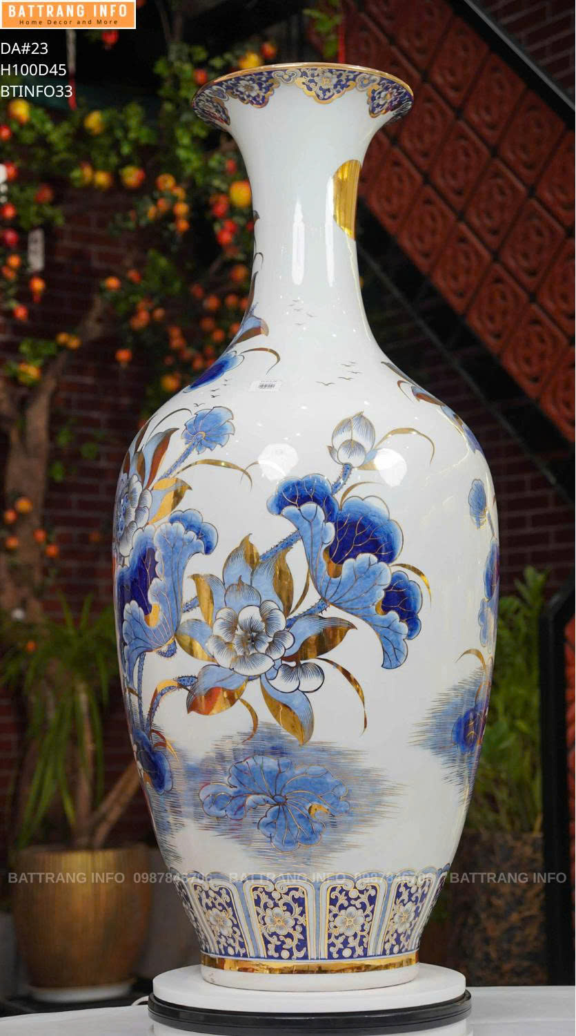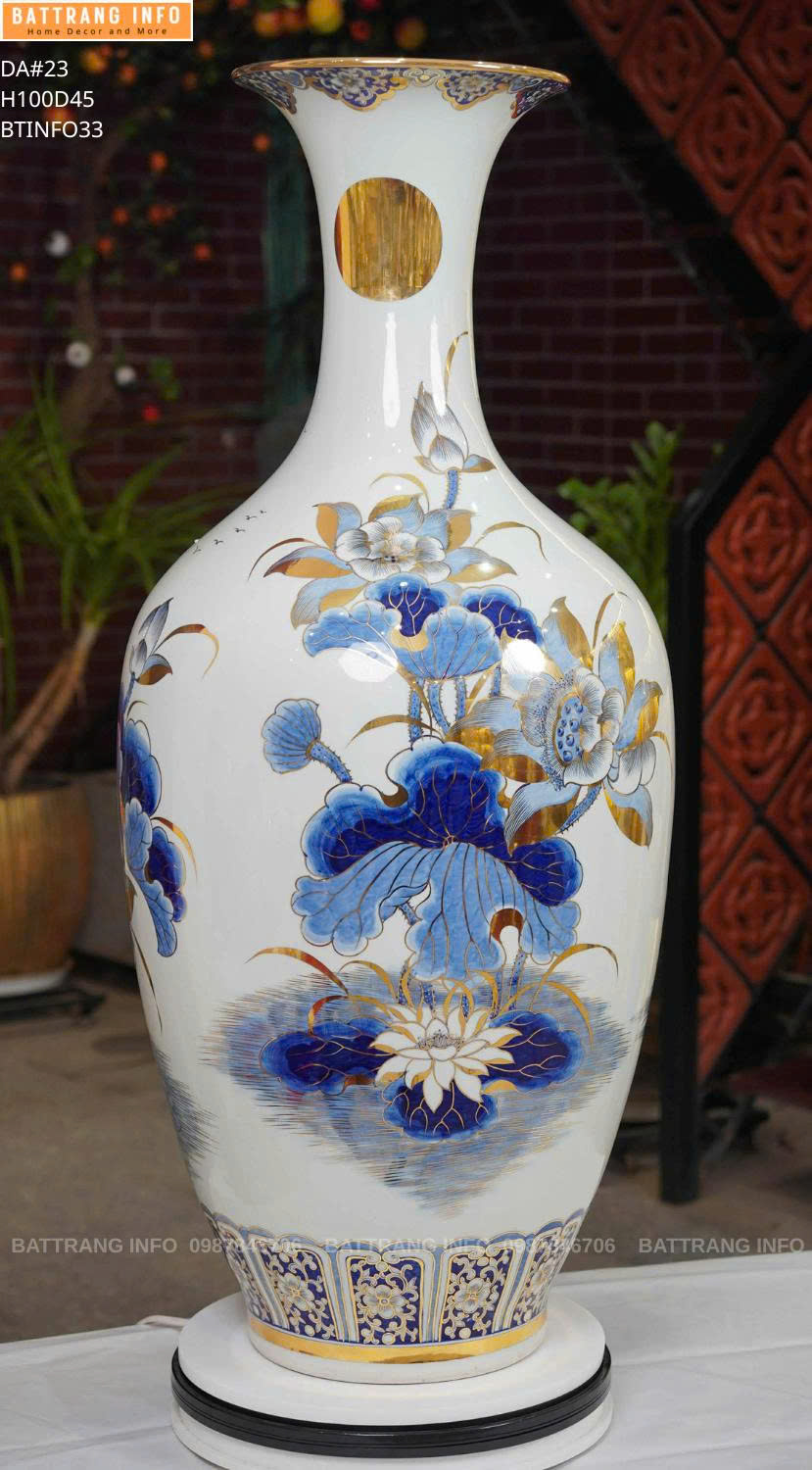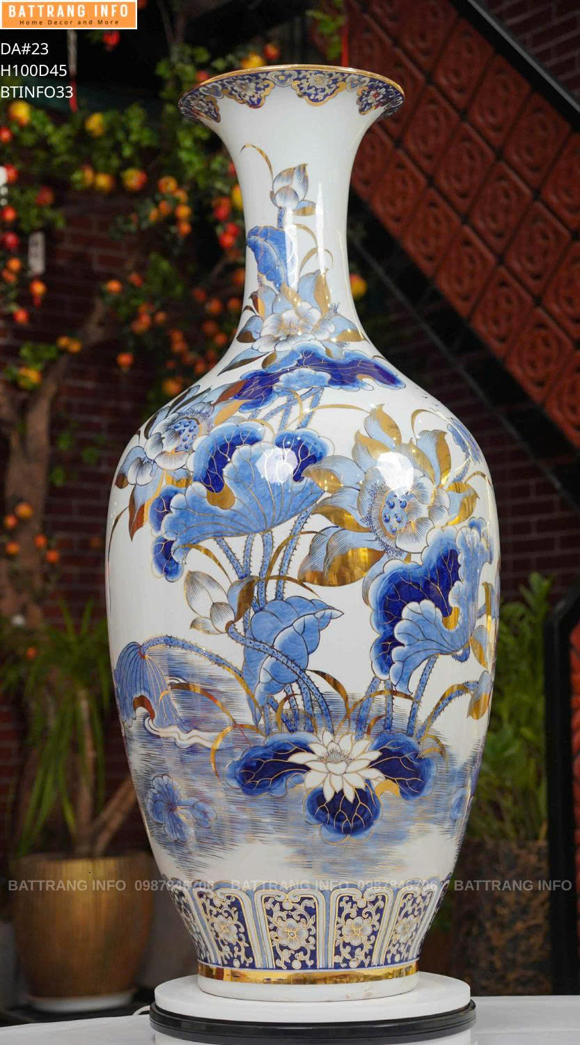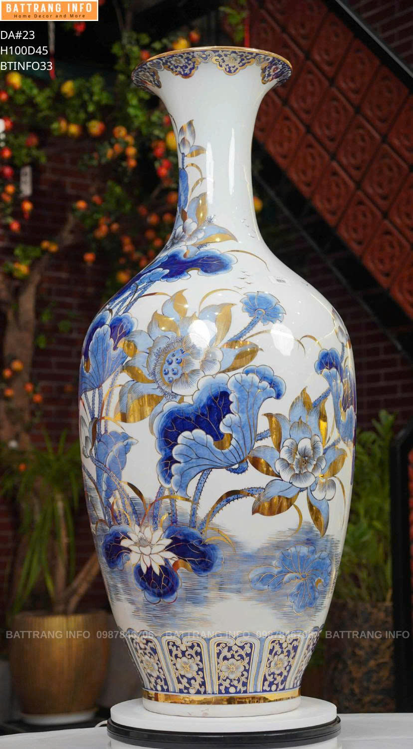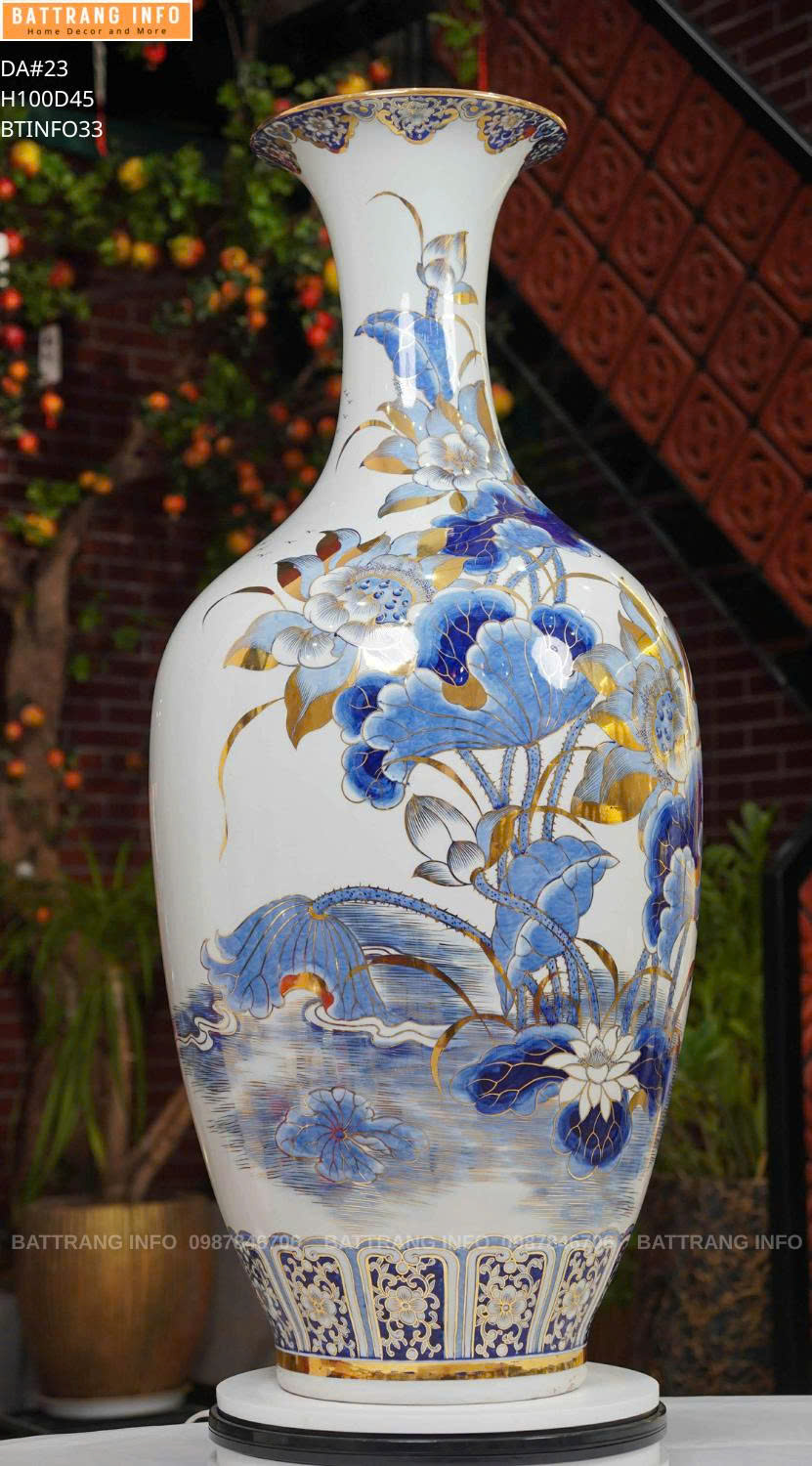 BẢO BÌNH SEN PHÚ QUÝ VẼ VÀNG 24K CAO 1M – TÁC PHẨM PHONG THỦY CAO CẤP BÁT TRÀNG