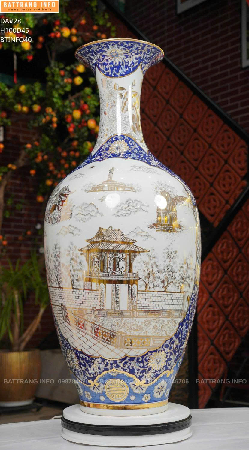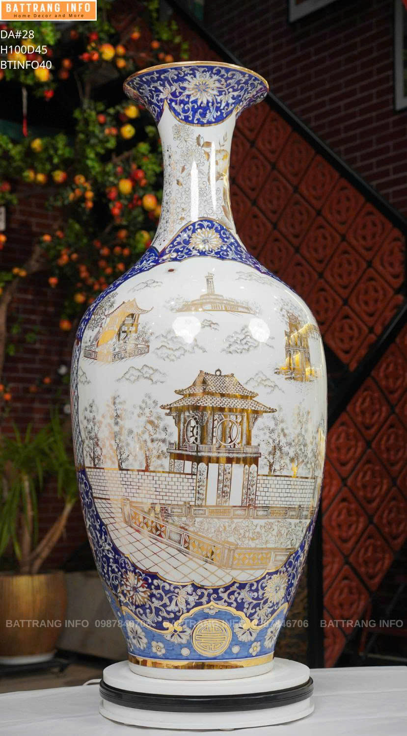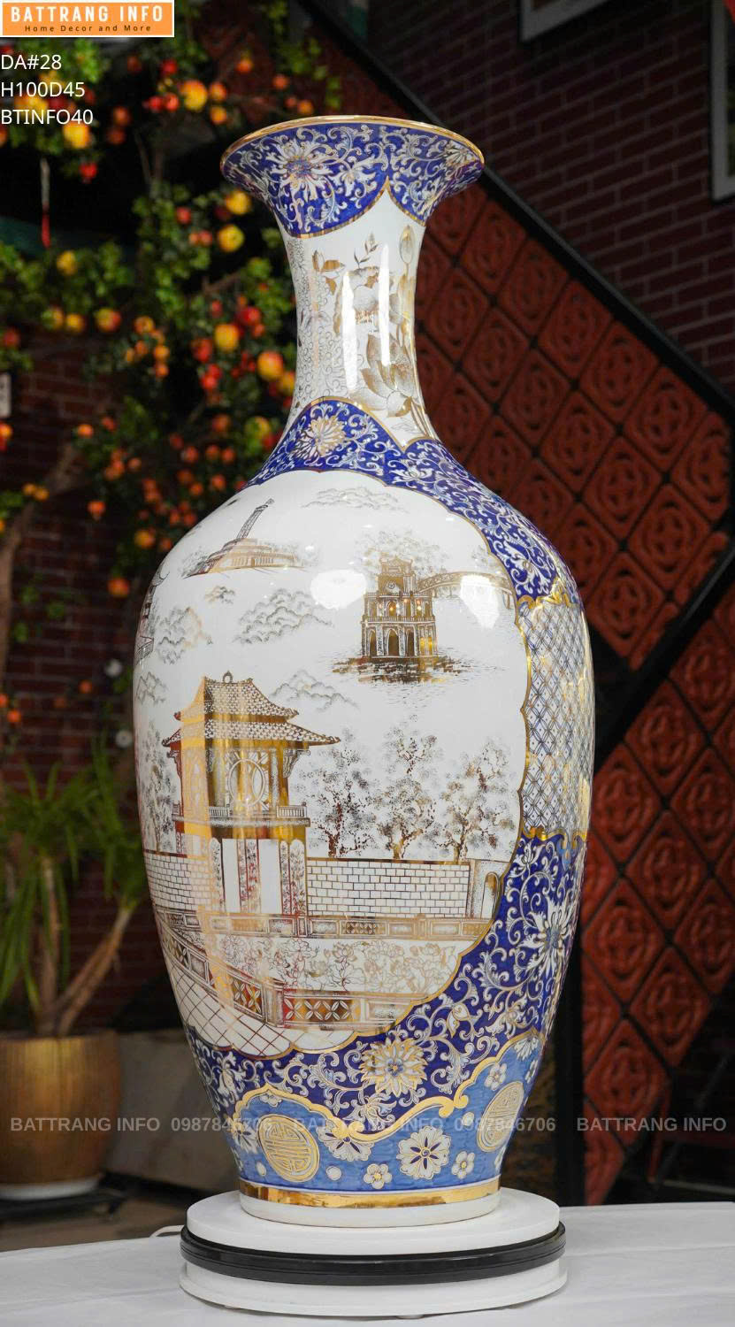 Bảo Bình Vẽ Cảnh Hà Nội Cao 1m – Vẽ Vàng 24k Cao Cấp Bát Tràng | Tác Phẩm Phong Thủy Đẳng Cấp