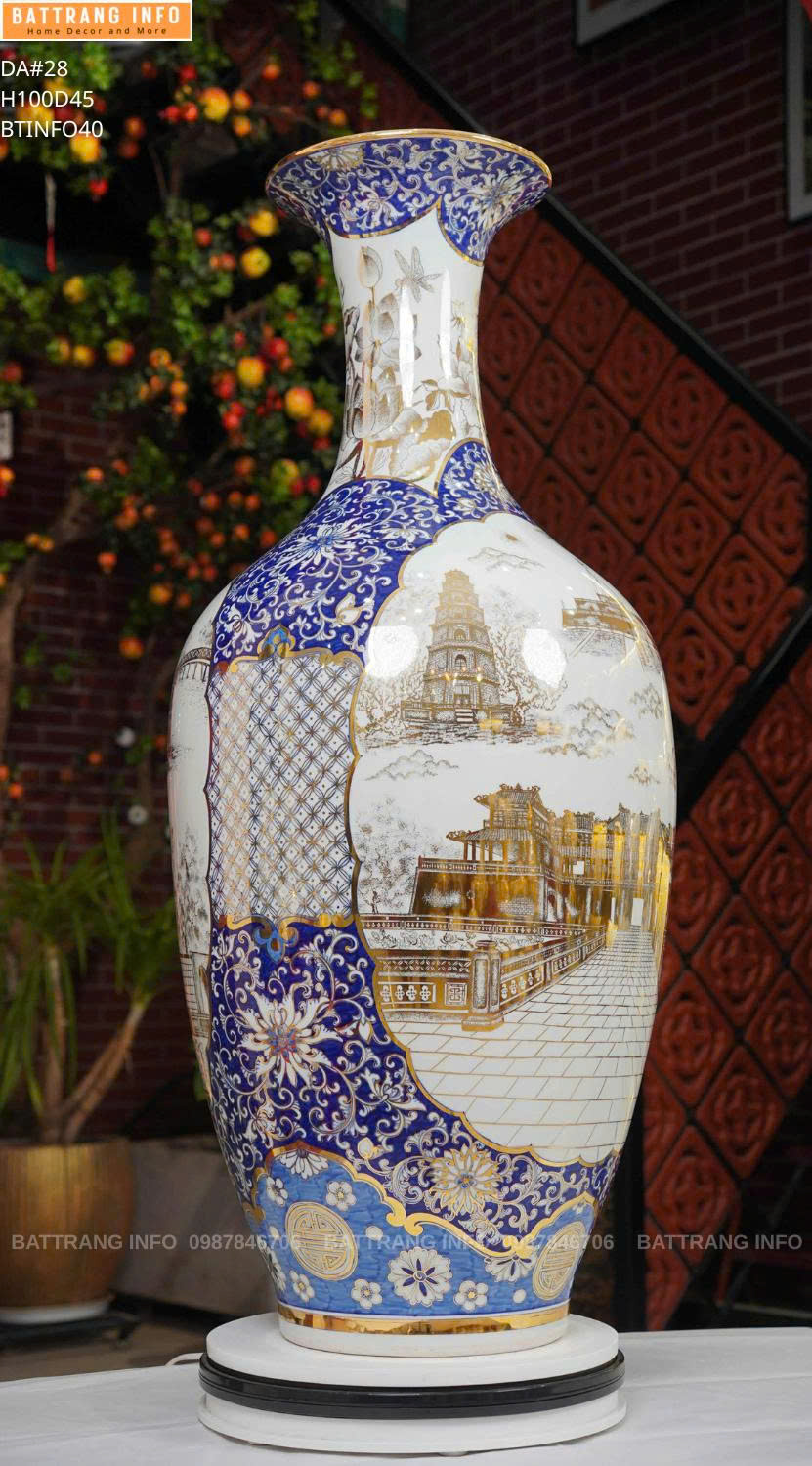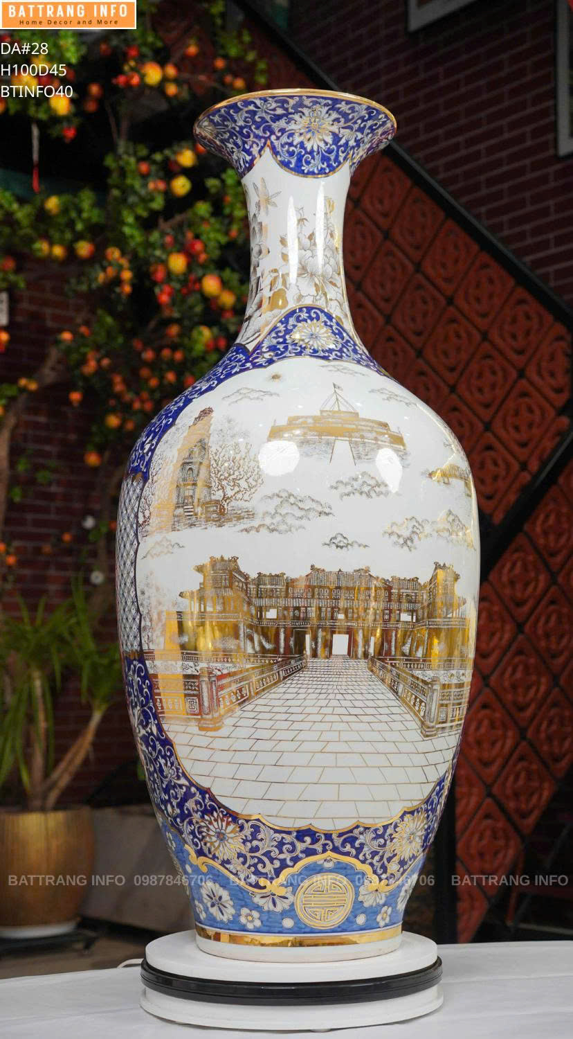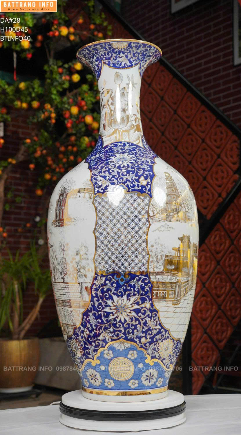 Bảo Bình Vẽ Cảnh Hà Nội Cao 1m – Vẽ Vàng 24k Cao Cấp Bát Tràng | Tác Phẩm Phong Thủy Đẳng Cấp