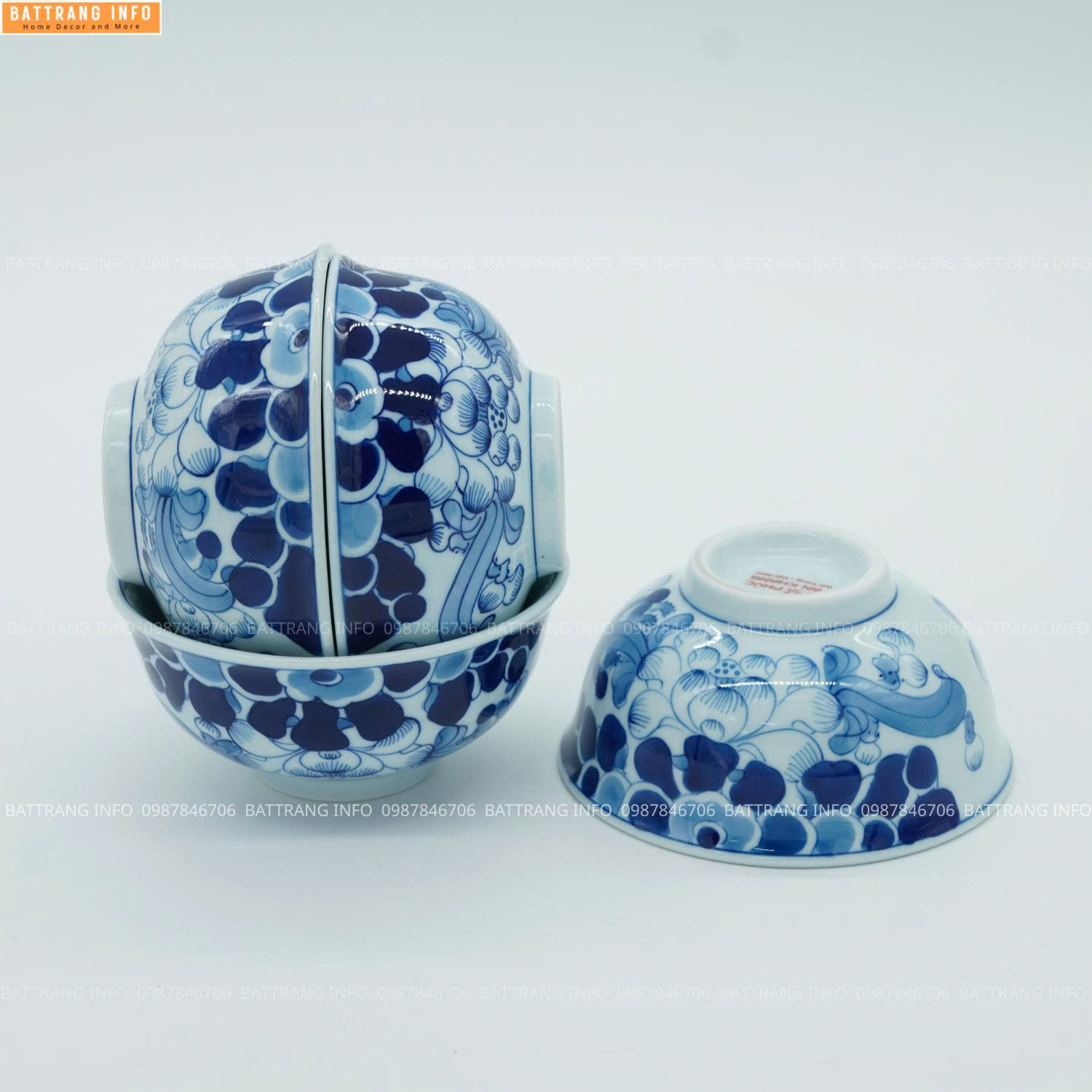 Bát cúng được phủ men lam cổ truyền, màu xanh lam dịu nhẹ, trong trẻo, có độ sâu và độ bền cao. Men được nung ở nhiệt độ trên 1.200°C giúp sản phẩm chắc chắn, không rạn nứt, không phai màu theo thời gian.
