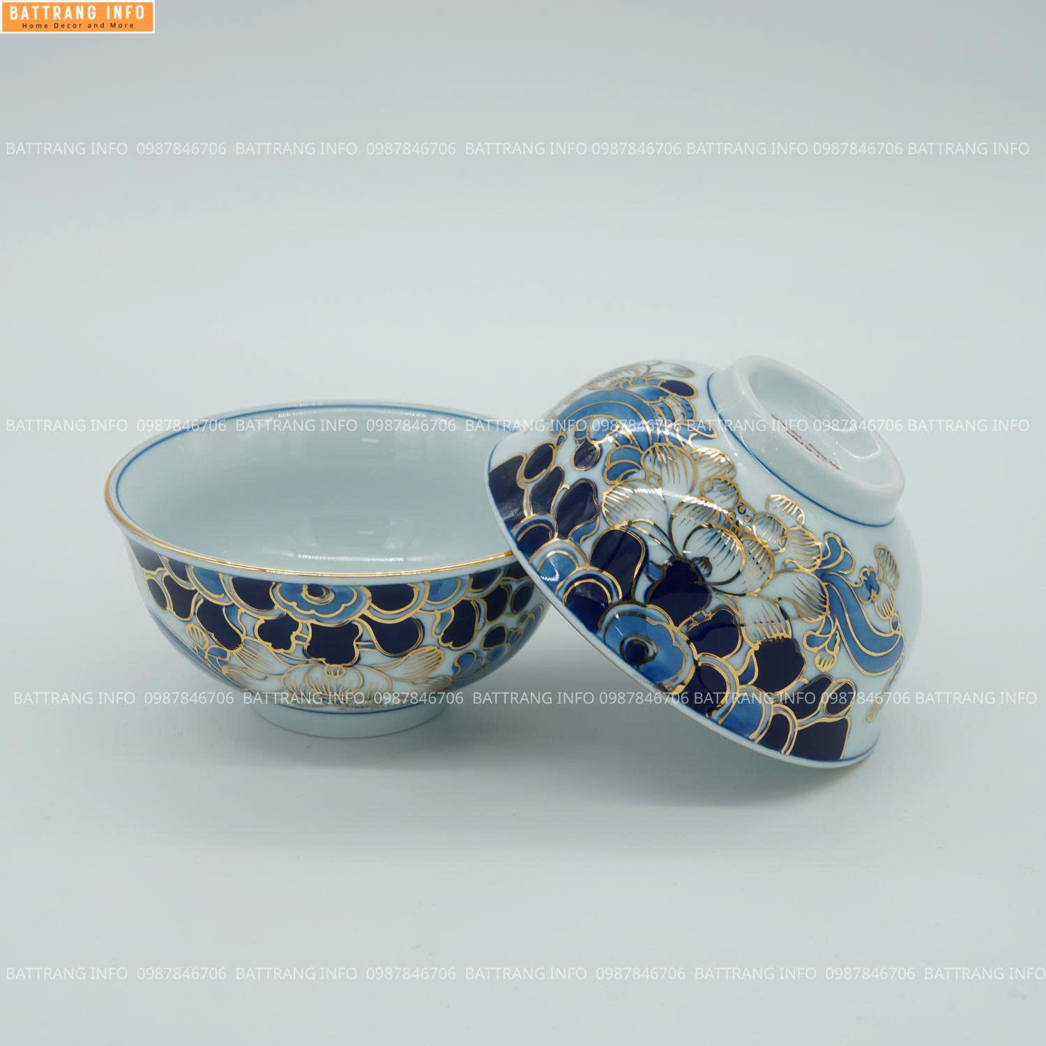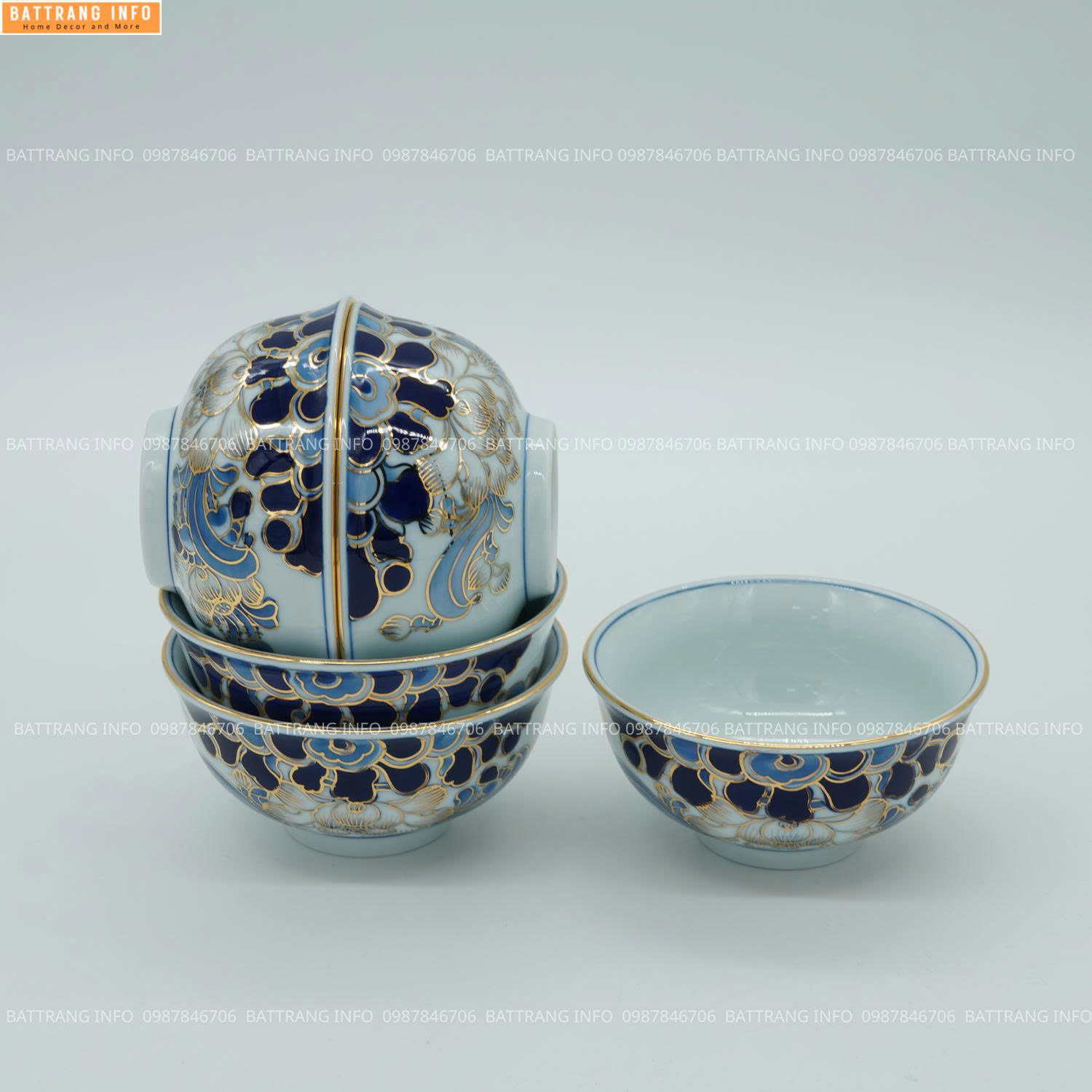 Bát Tràng cao cấp Bát cúng men lam vẽ vàng 24K được chế tác hoàn toàn thủ công: