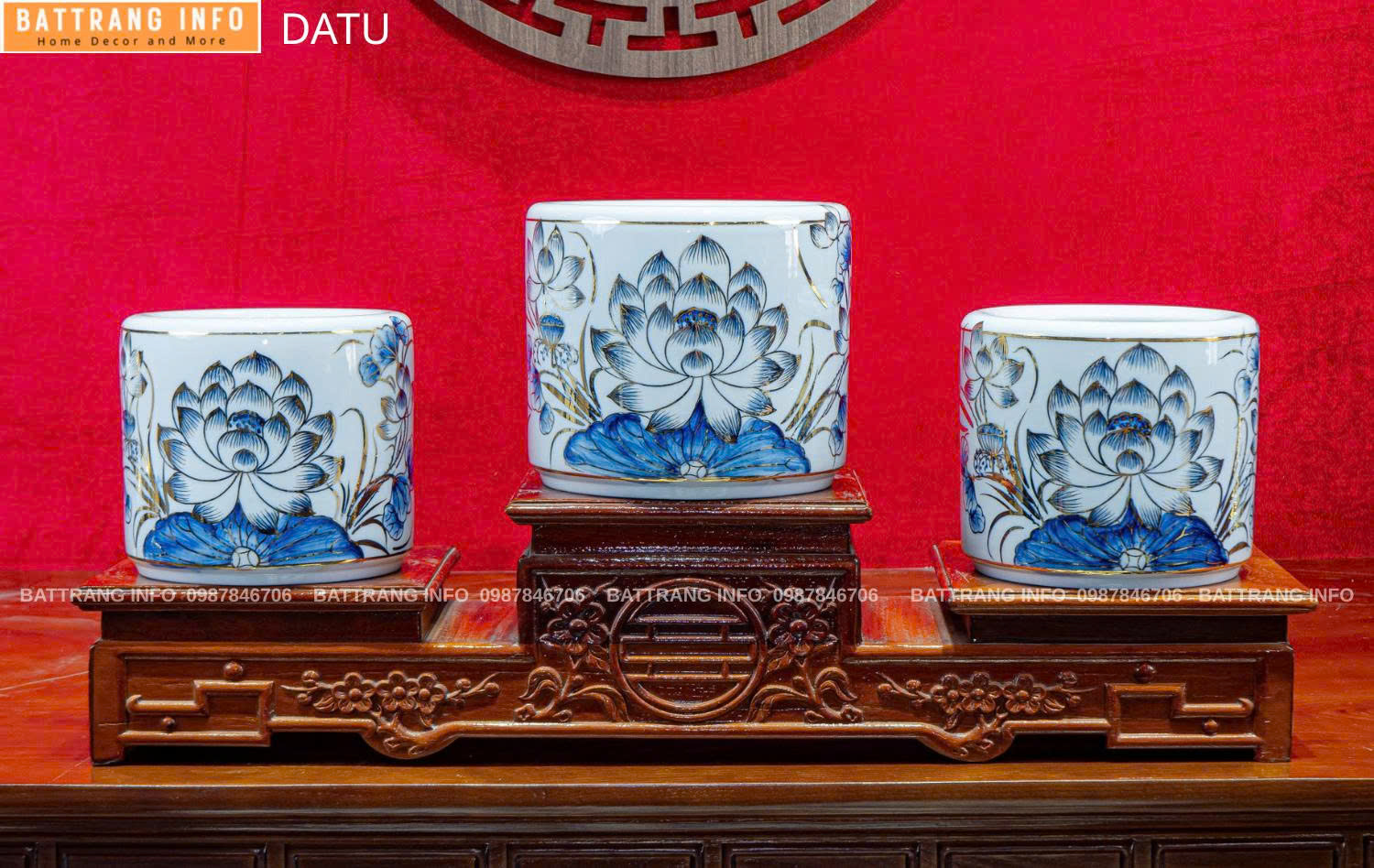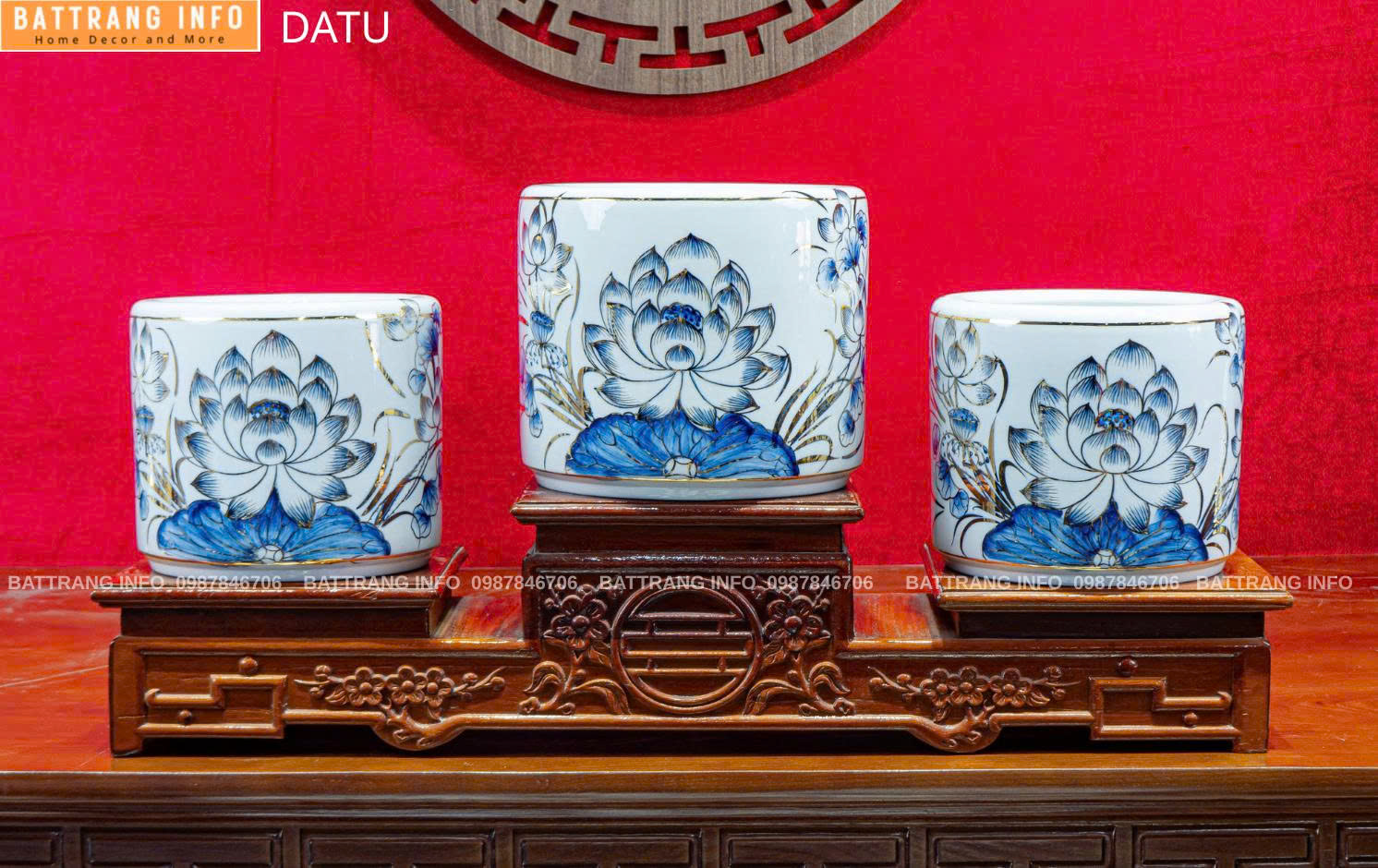 Bộ Đồ Thờ Hoa Sen Vẽ Vàng 24k Cao Cấp Bát Tràng – Tinh Hoa Gốm Việt Cho Không Gian Thờ Tự Trang Nghiêm