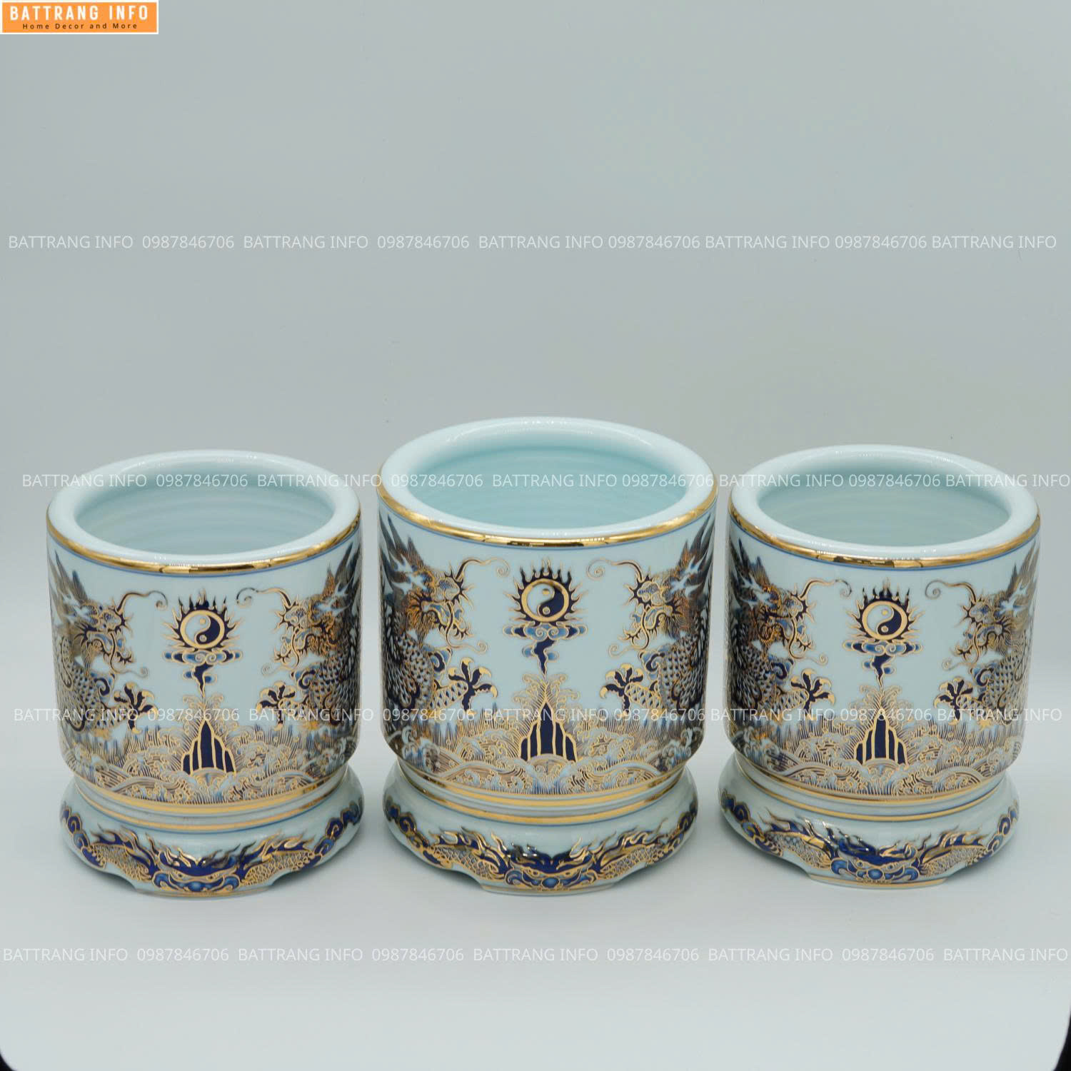 Bát hương men lam khử vuốt tay vẽ vàng 24K mang ý nghĩa: