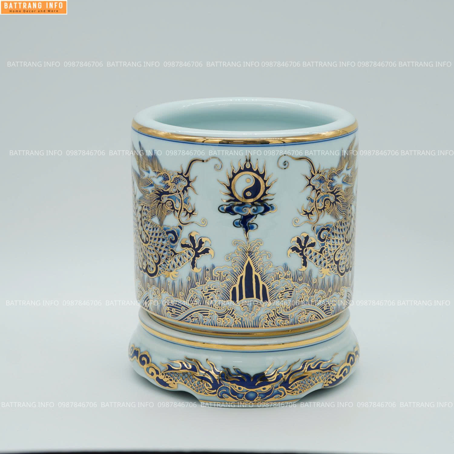 Bát Hương Men Lam Khử Vuốt Tay Vẽ Vàng 24K Cao Cấp Bát Tràng – Tinh Hoa Gốm Sứ Tâm Linh Việt
