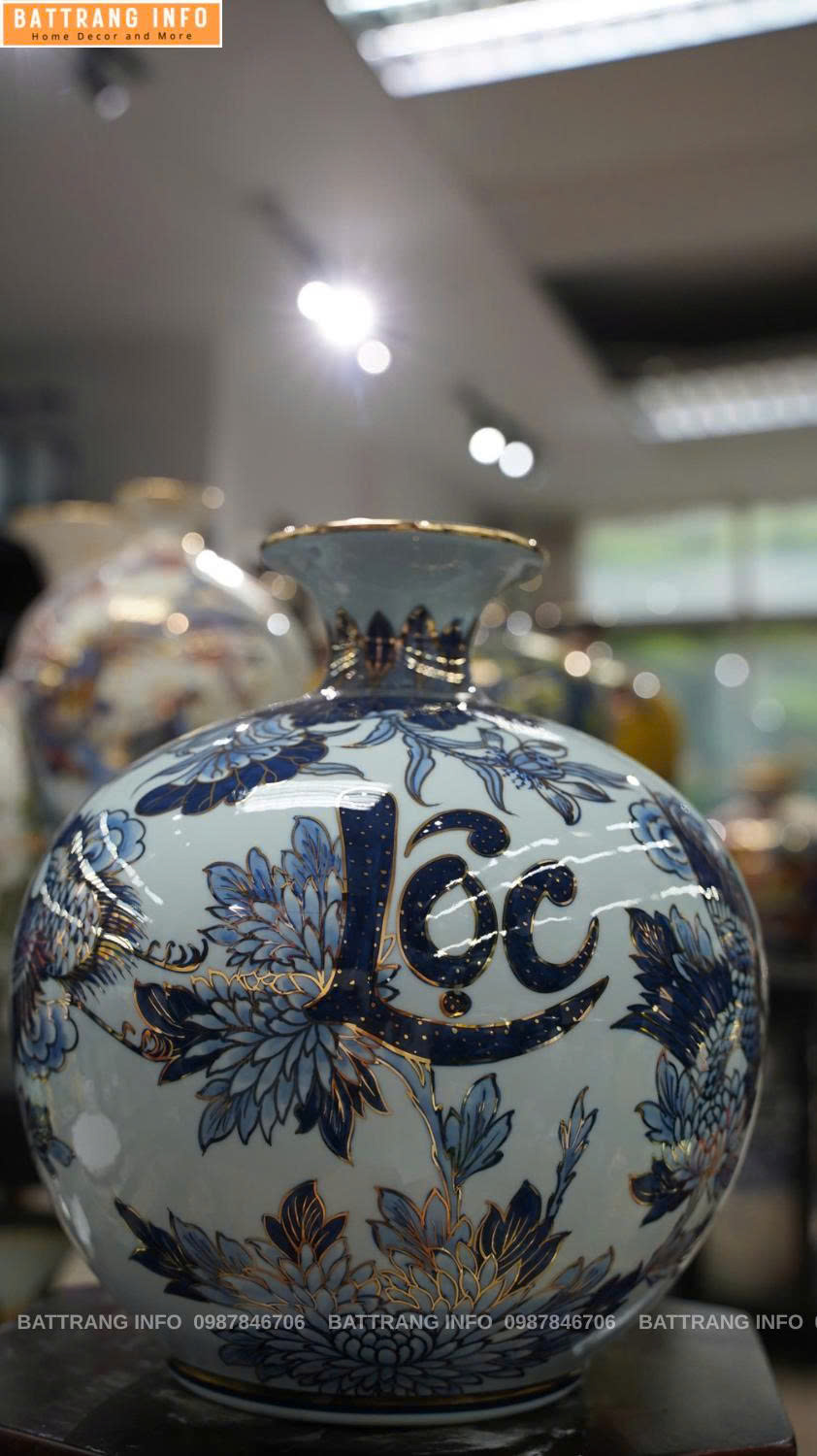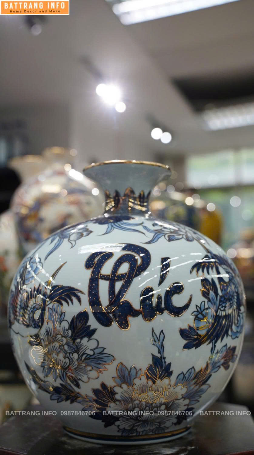 Liên hệ ngay với Gốm sứ Battrang.info – đại lý phân phối gốm sứ Bát Tràng uy tín toàn quốc để sở hữu bình hút lộc chữ Phúc Lộc Thọ cao 30cm vẽ vàng 24k chính hãng, bảo hành trọn đời, giao hàng toàn quốc.