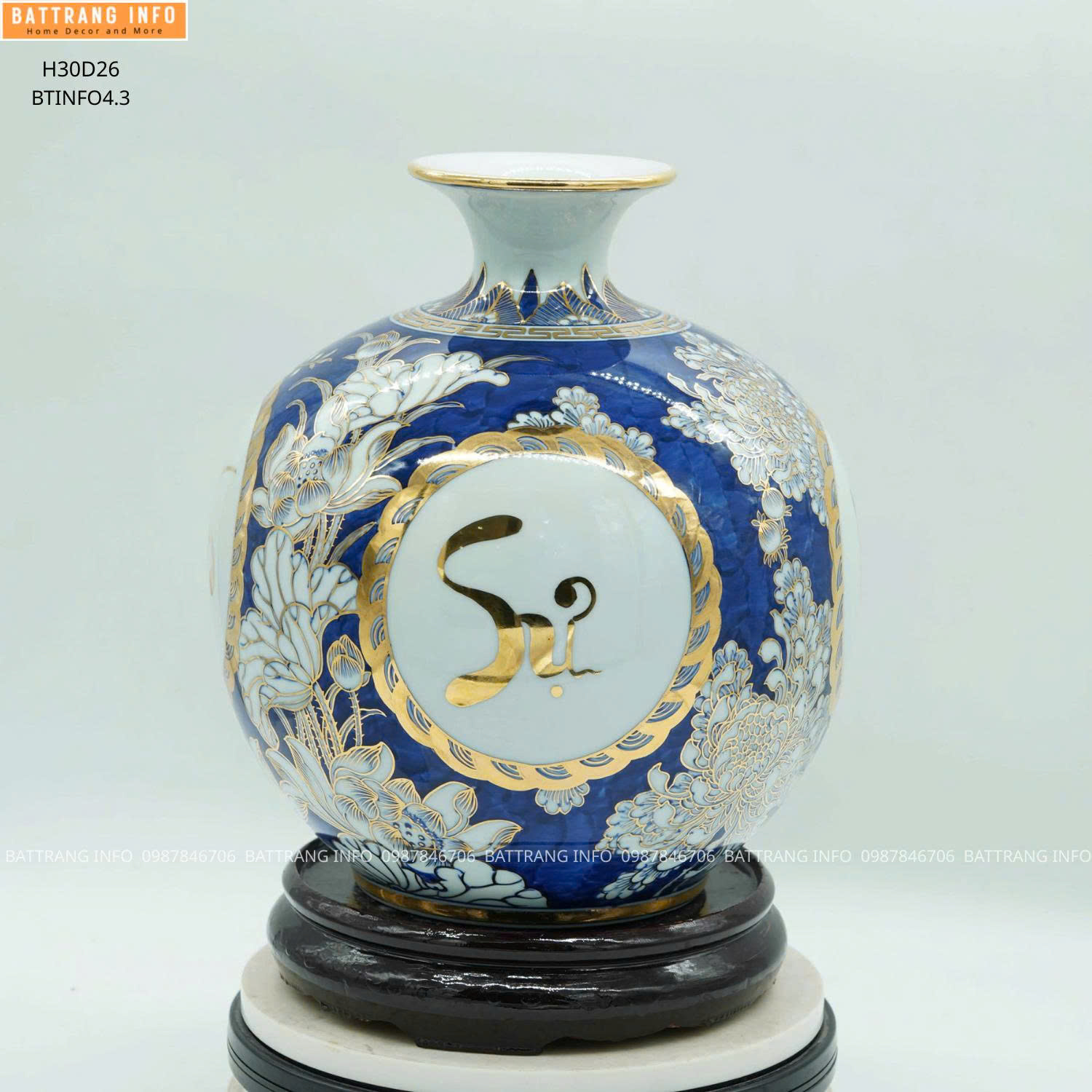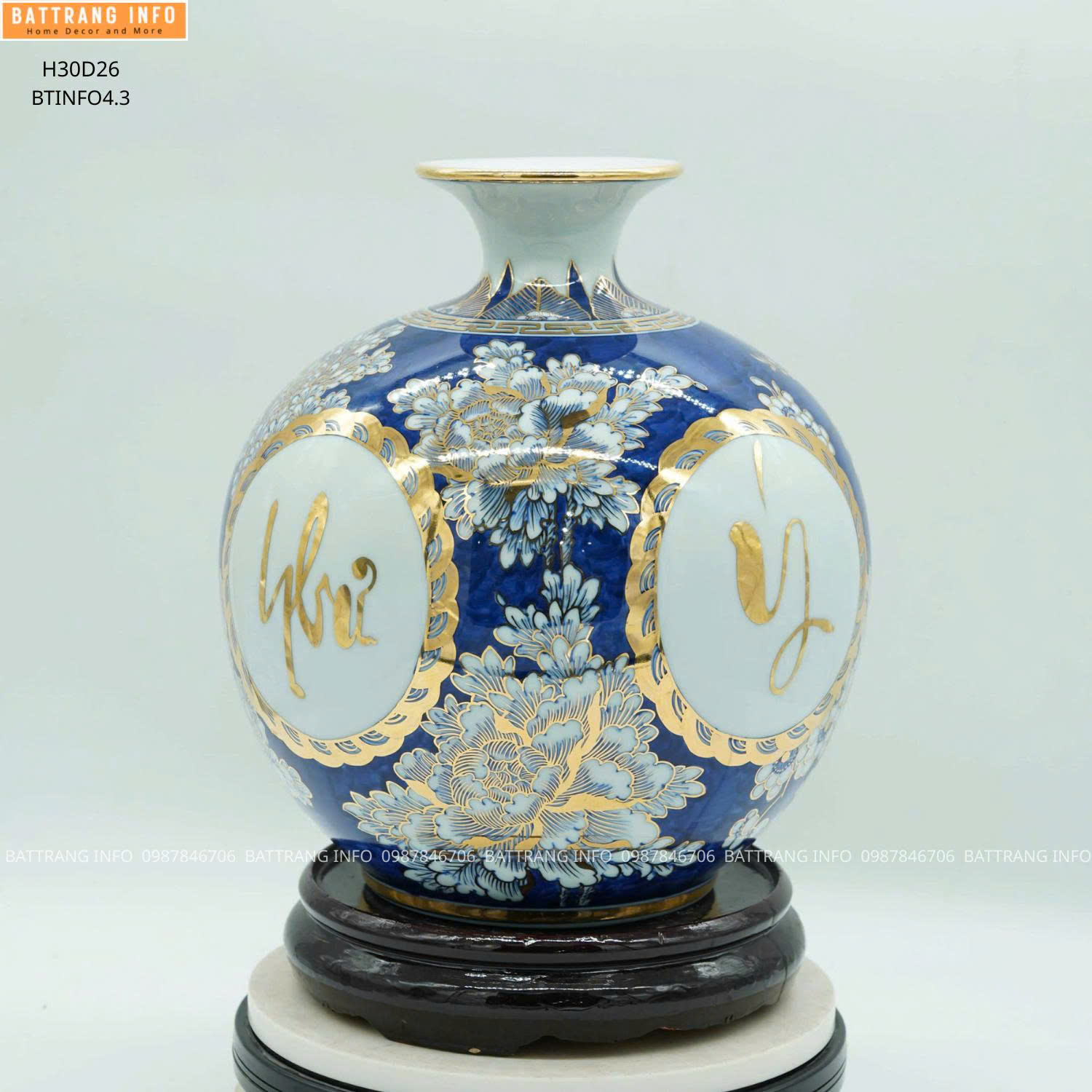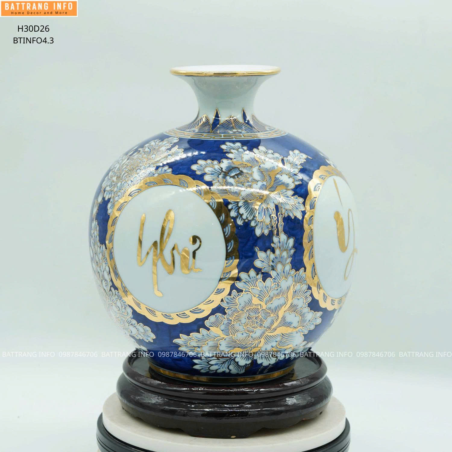 Quý khách có thể đặt mua bình hút lộc chữ Vạn Sự Như Ý cao 30cm vẽ vàng 24k chính hãng tại Gốm sứ Battrang.info