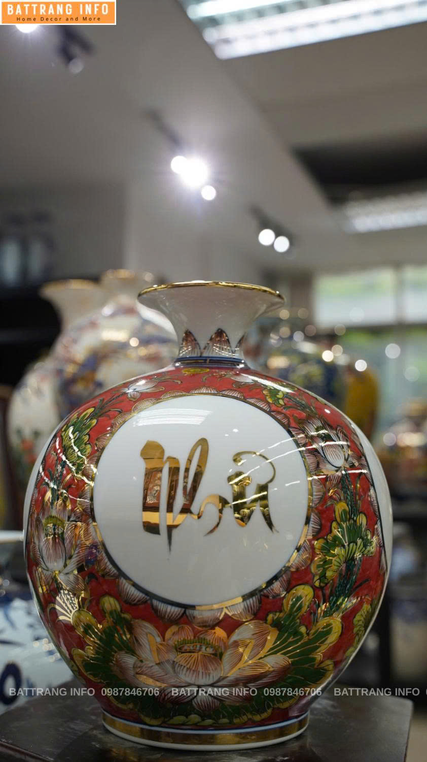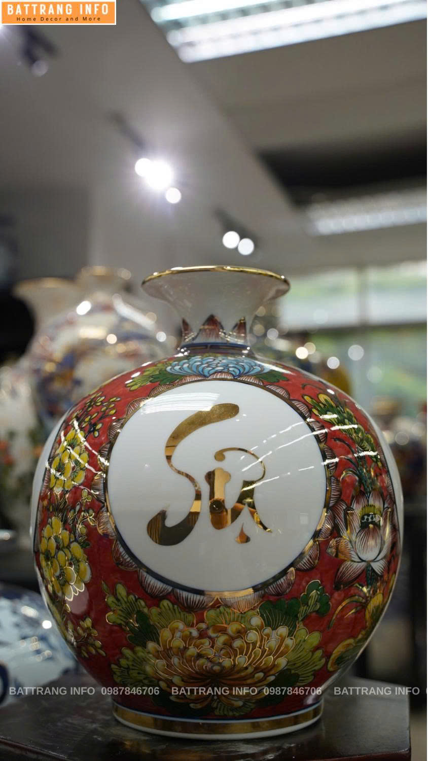 Quý khách có thể đặt mua bình hút lộc chữ Vạn Sự Như Ý cao 30cm vẽ vàng 24k chính hãng tại Gốm sứ Battrang.info