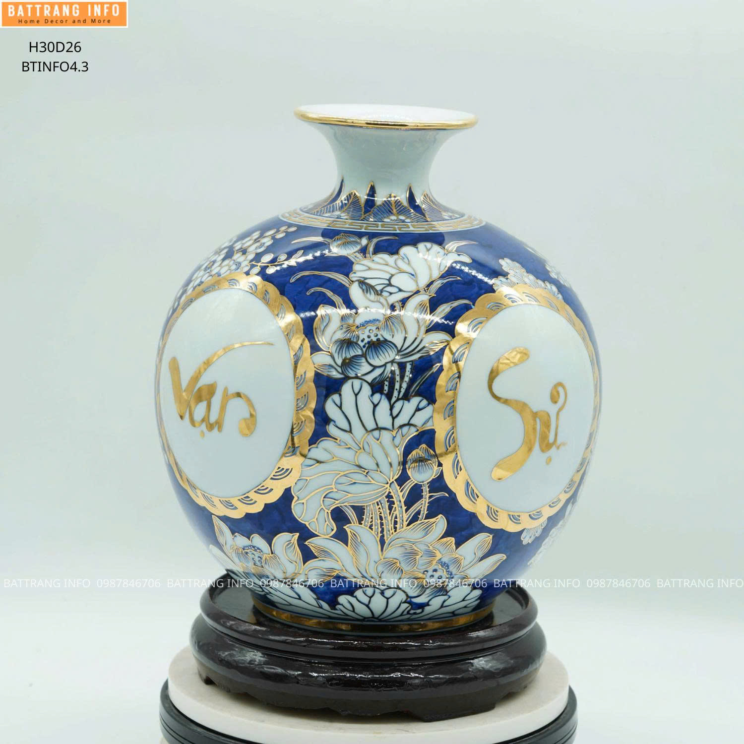 Bình hút lộc chữ Vạn Sự Như Ý cao 30cm vẽ vàng 24k cao cấp Bát Tràng