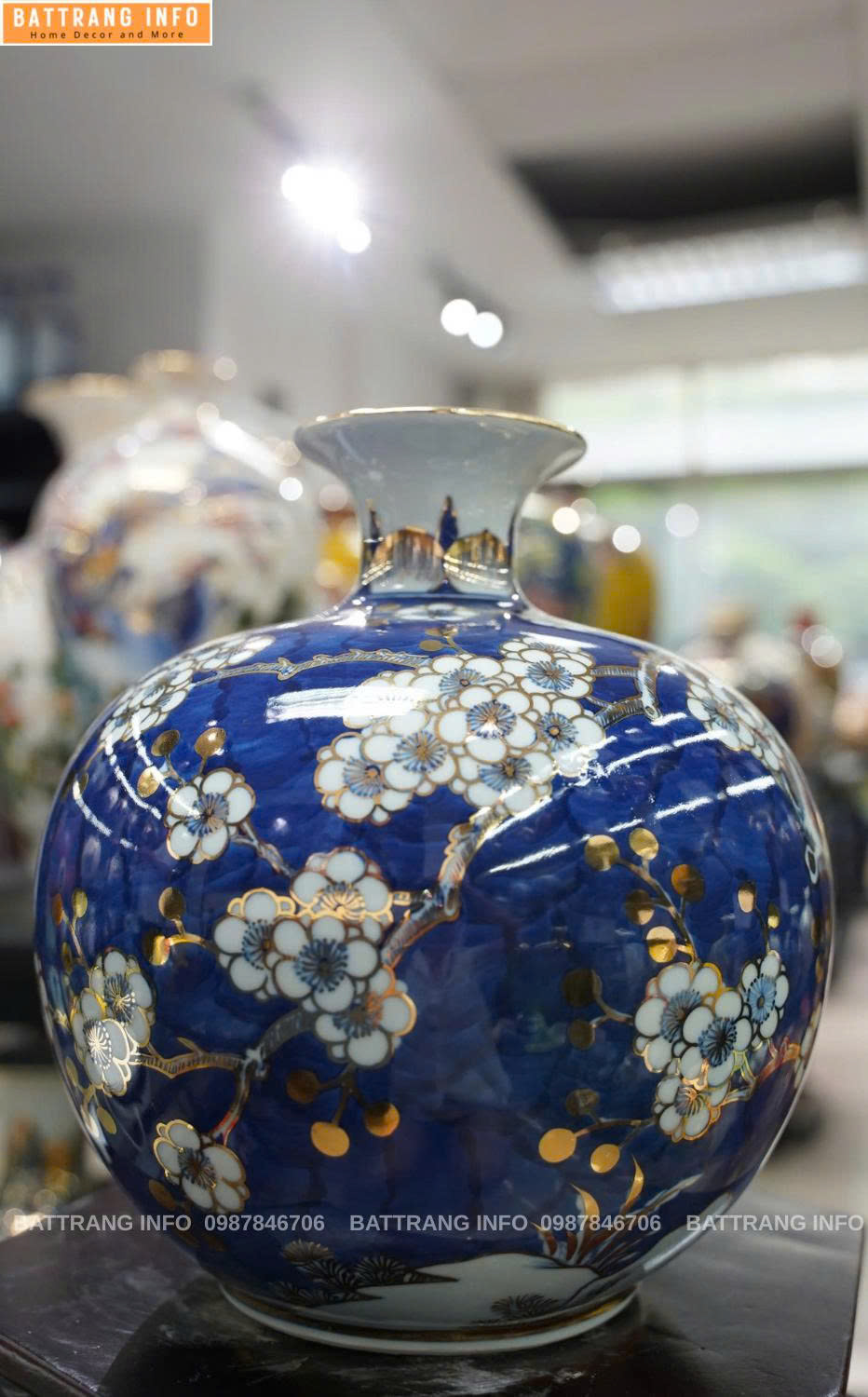 Bình hút lộc đào băng vẽ tay vẽ vàng 24k cao cấp Bát Tràng cao 30cm