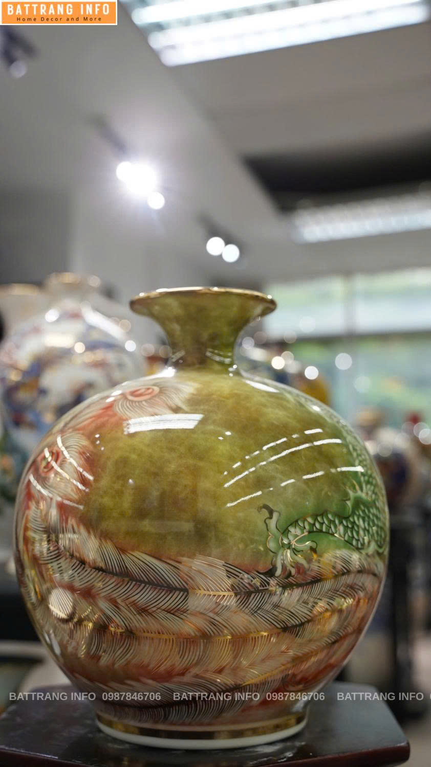 Bình hút lộc Long Phụng sum vầy cao 30cm vẽ vàng 24k cao cấp Bát Tràng