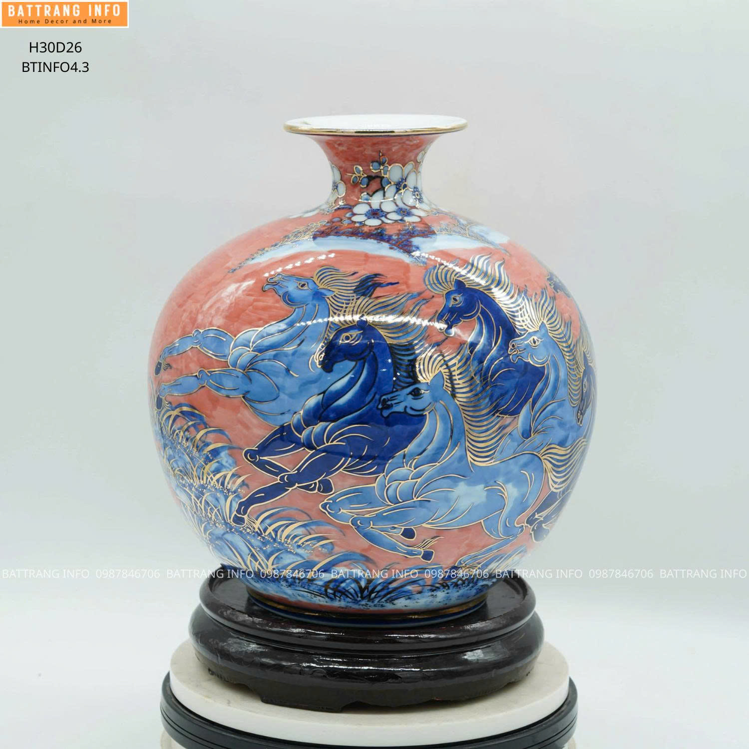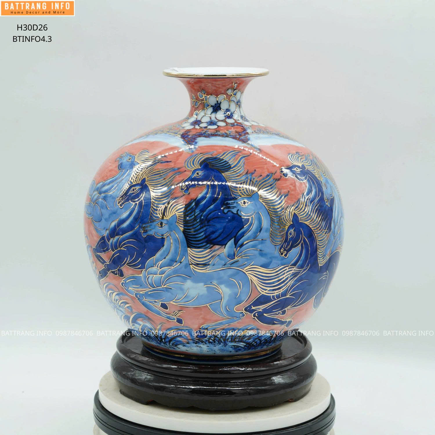 Bình Hút Lộc Mã Đáo Thành Công Cao 30cm Vẽ Vàng 24K Cao Cấp Bát Tràng