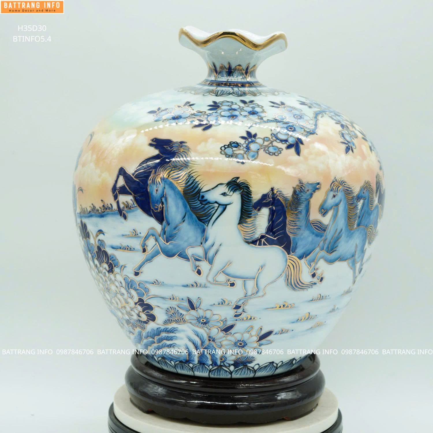 Bình Hút Lộc Mã Đáo Thành Công Cao 35cm Vẽ Vàng 24K Cao Cấp Bát Tràng