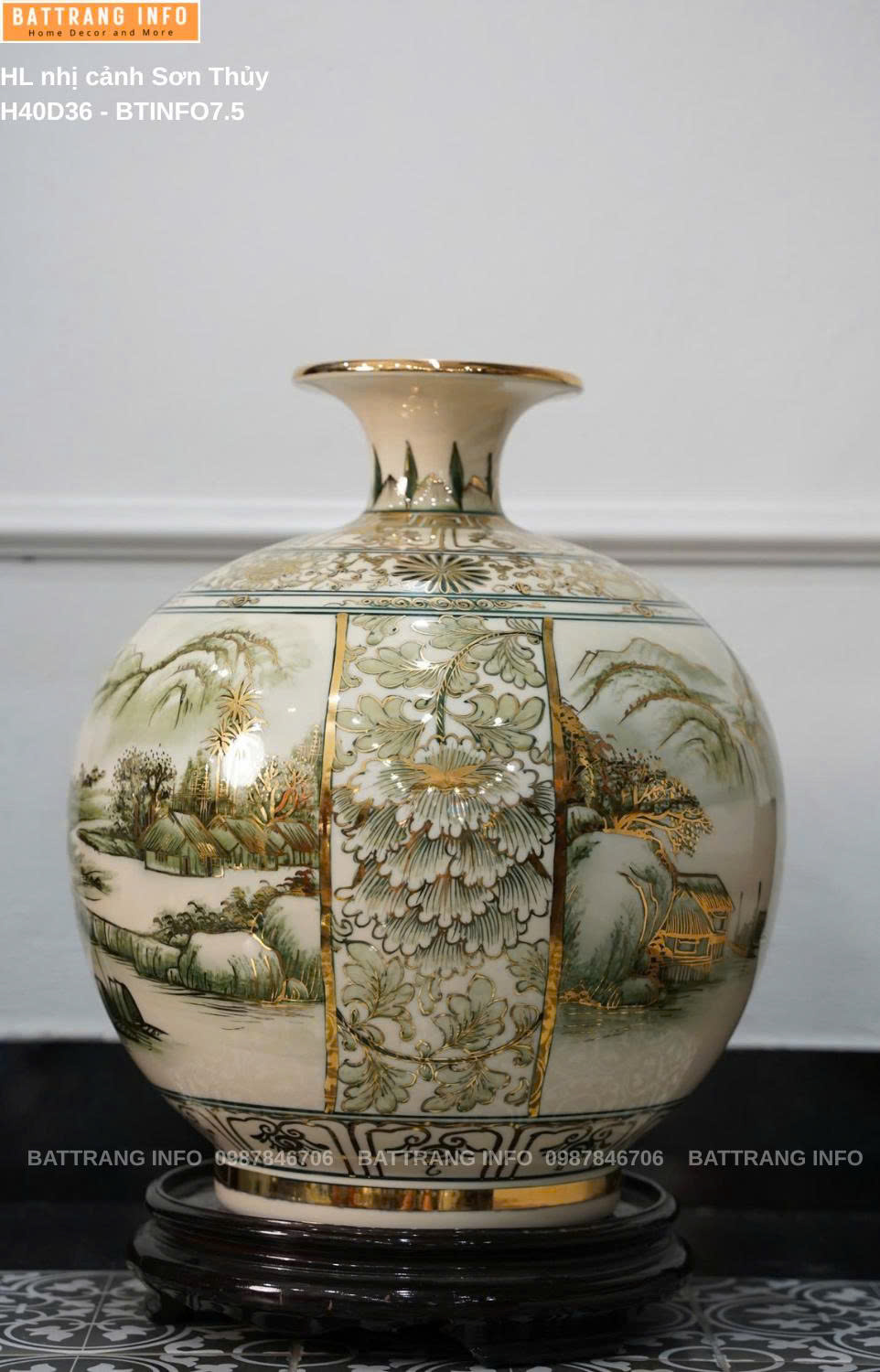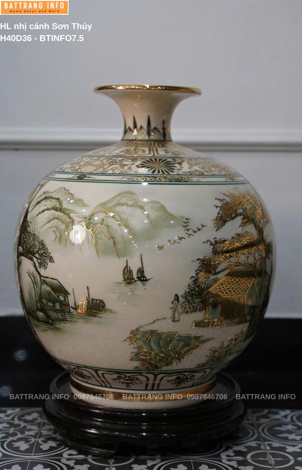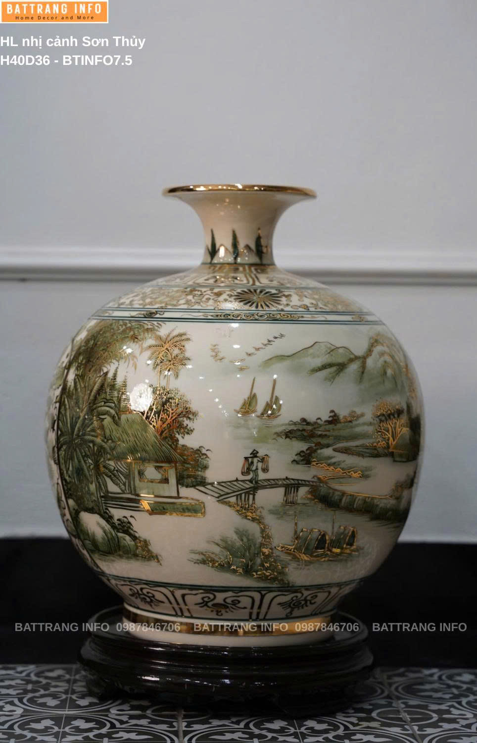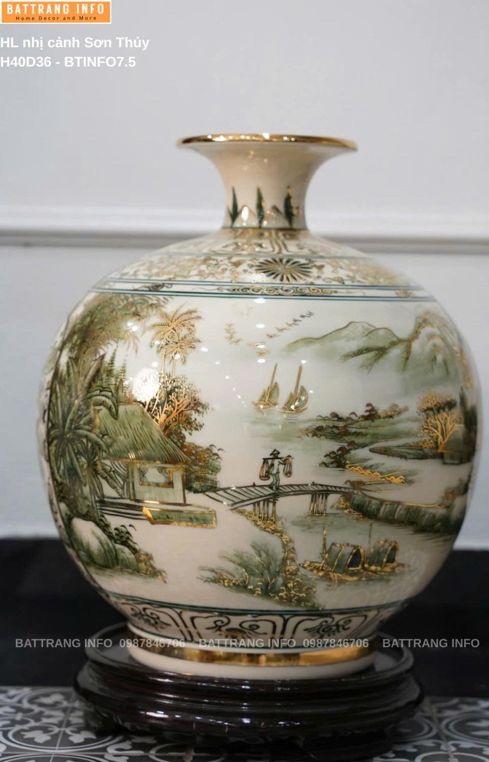 Bình Hút Lộc Nhị Cảnh Sơn Thuỷ Cao 40cm Vẽ Vàng 24K – Gốm Sứ Bát Tràng Cao Cấp Sản phẩm phong thủy đẳng cấp – Tinh hoa từ làng nghề truyền thống Bát Tràng