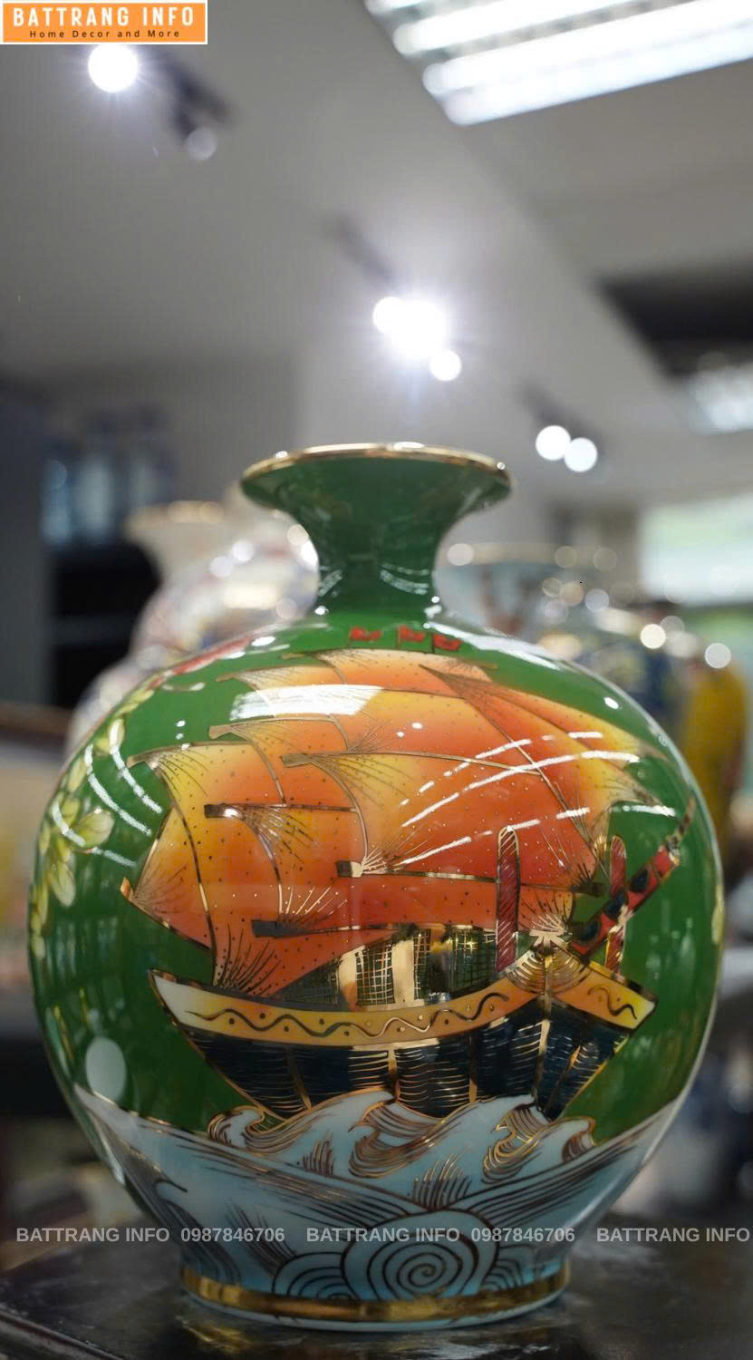 Bình Hút Lộc Thuận Buồm Xuôi Gió Cao 30cm Vẽ Vàng 24K Cao Cấp Bát Tràng