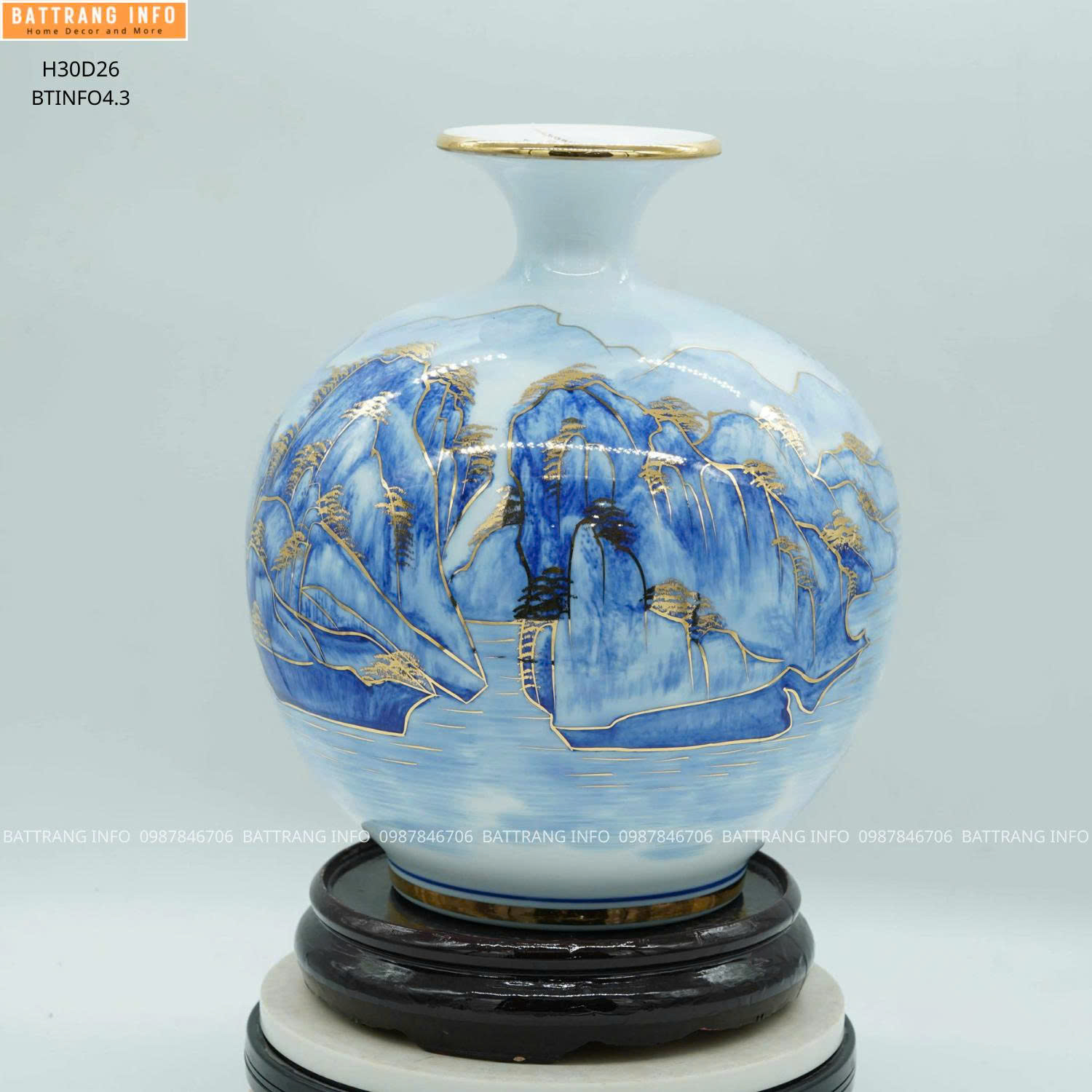Bình hút lộc Thuận Buồm Xuôi Gió cao 30cm là một trong những dòng gốm sứ phong thủy cao cấp được chế tác thủ công tại làng gốm Bát Tràng – cái nôi của nghệ thuật gốm Việt Nam. Sản phẩm được vẽ vàng thật 24K, mang vẻ đẹp sang trọng, tinh tế và ý nghĩa phong thủy sâu sắc, rất thích hợp để trưng bày trong phòng khách, phòng làm việc, hoặc làm quà tặng cao cấp cho doanh nhân.