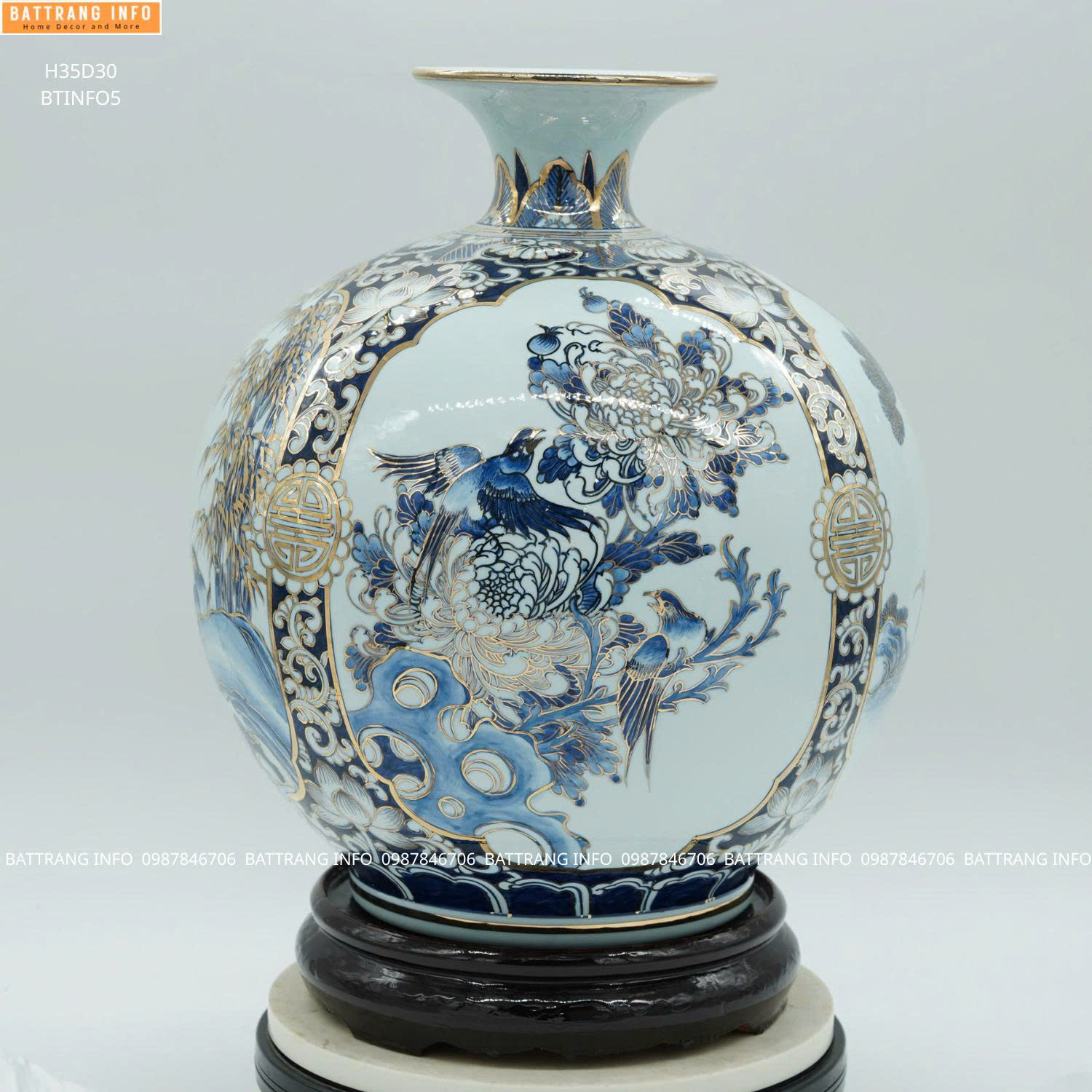 Bình Hút Lộc Tứ Cảnh Cao 35cm Vẽ Tay Cao Cấp Bát Tràng – Vượng Khí Hút Tài Đắc Lộc