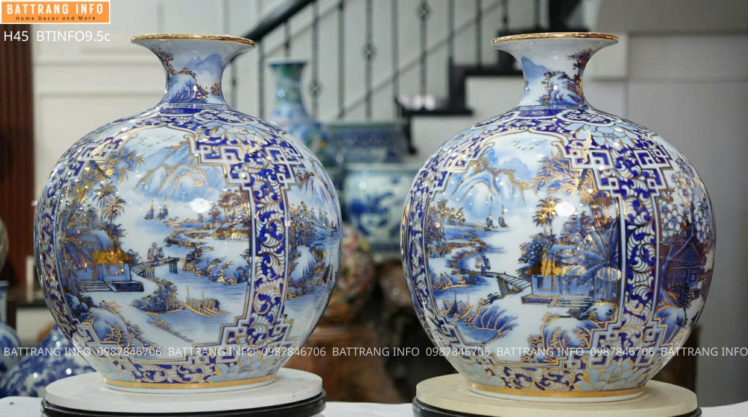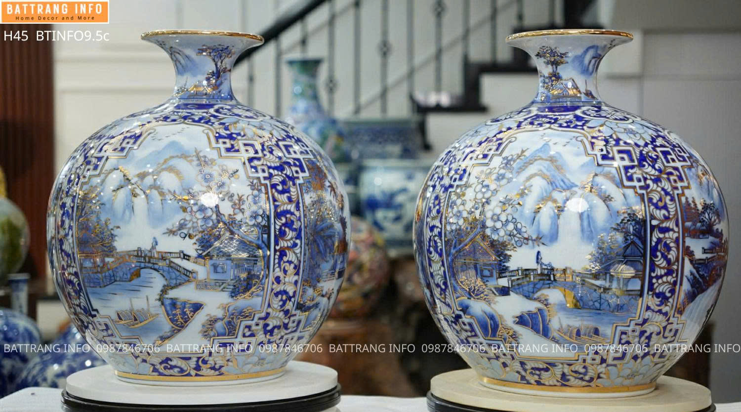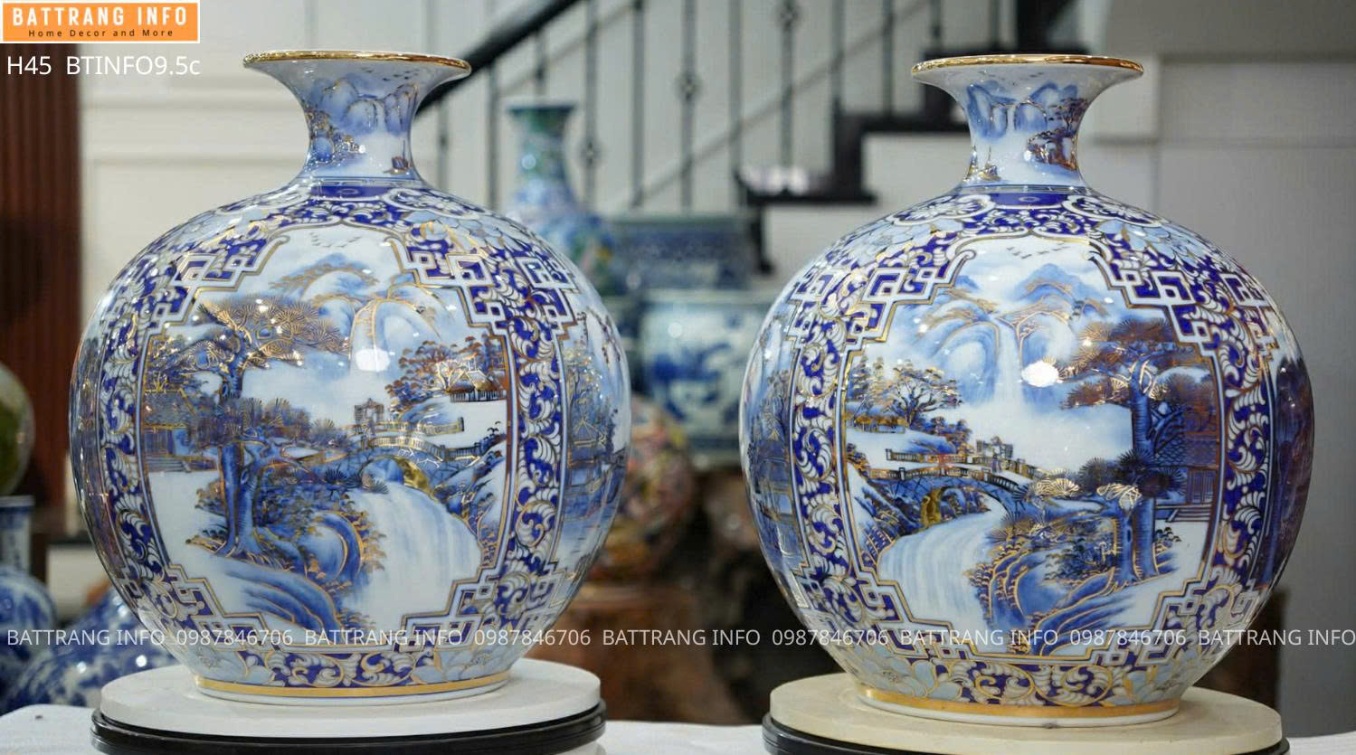 Bình Hút Lộc Tứ Cảnh Sơn Thủy Vẽ Vàng 24K Cao 45cm Cao Cấp Bát Tràng – Tuyệt Tác Phong Thủy