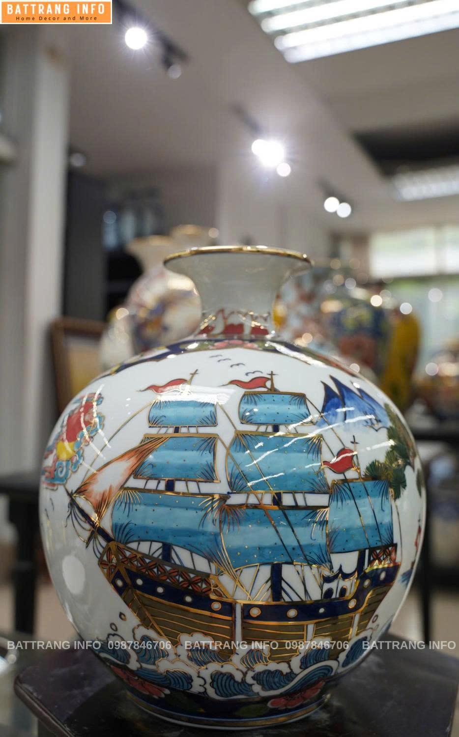 Bình hút lộc vẽ tay vẽ vàng 24k Thuận Buồm Xuôi Gió cao cấp Bát Tràng cao 30cm  - Mang Tài Lộc - May Mắn - Thịnh Vượng