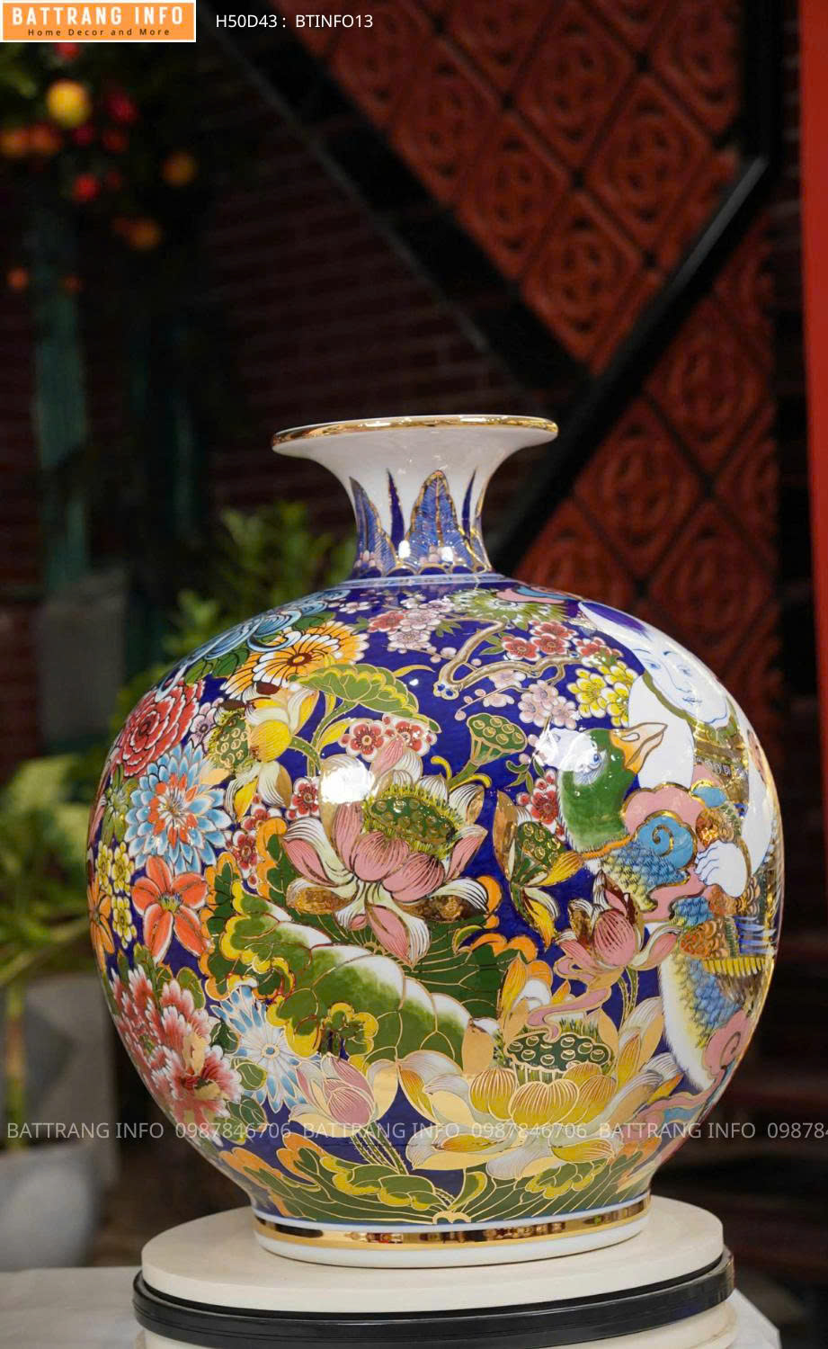 Bình hút lộc phong thủy – Biểu tượng của tài lộc và thịnh vượng Bình hút lộc Vinh Hoa Phú Quý cao 50cm vẽ vàng 24K là dòng gốm sứ phong thủy cao cấp Bát Tràng, được chế tác thủ công tinh xảo, mang ý nghĩa chiêu tài – tụ lộc – gia tăng vượng khí cho gia chủ. Sản phẩm không chỉ là vật phẩm phong thủy giá trị mà còn là tác phẩm nghệ thuật sang trọng, phù hợp trưng bày và làm quà biếu đẳng cấp.