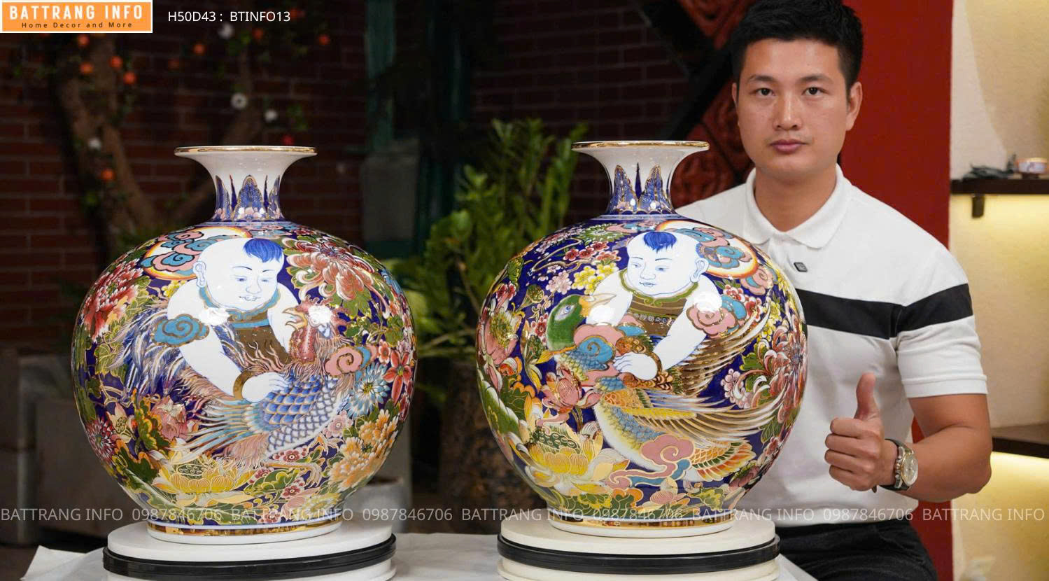 Bình Hút Lộc Vinh Hoa Phú Quý Cao 50cm Vẽ Vàng 24K Cao Cấp Bát Tràng