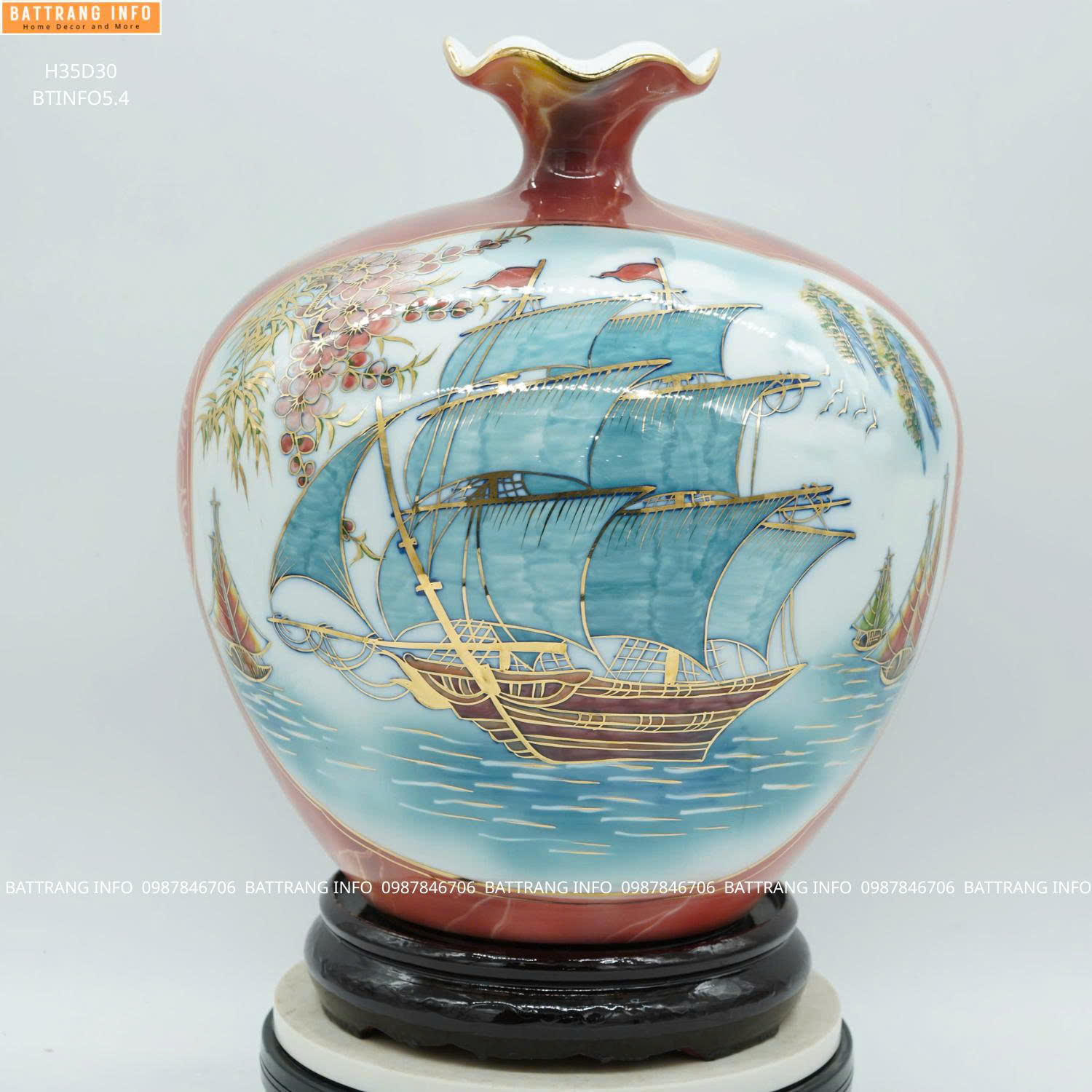 Bình hút tài lộc nhị cảnh Thuận Buồm Xuôi Gió & Mã Đáo Thành Công là dòng gốm sứ phong thủy cao cấp Bát Tràng, được chế tác thủ công tinh xảo, phủ men lam truyền thống kết hợp vẽ vàng 24K sang trọng, chiều cao 35cm – kích thước lý tưởng để trưng bày phòng khách, phòng làm việc, sảnh công ty hoặc làm quà tặng đẳng cấp. Sản phẩm không chỉ mang giá trị thẩm mỹ mà còn hàm chứa ý nghĩa phong thủy chiêu tài – kích lộc – hanh thông sự nghiệp.