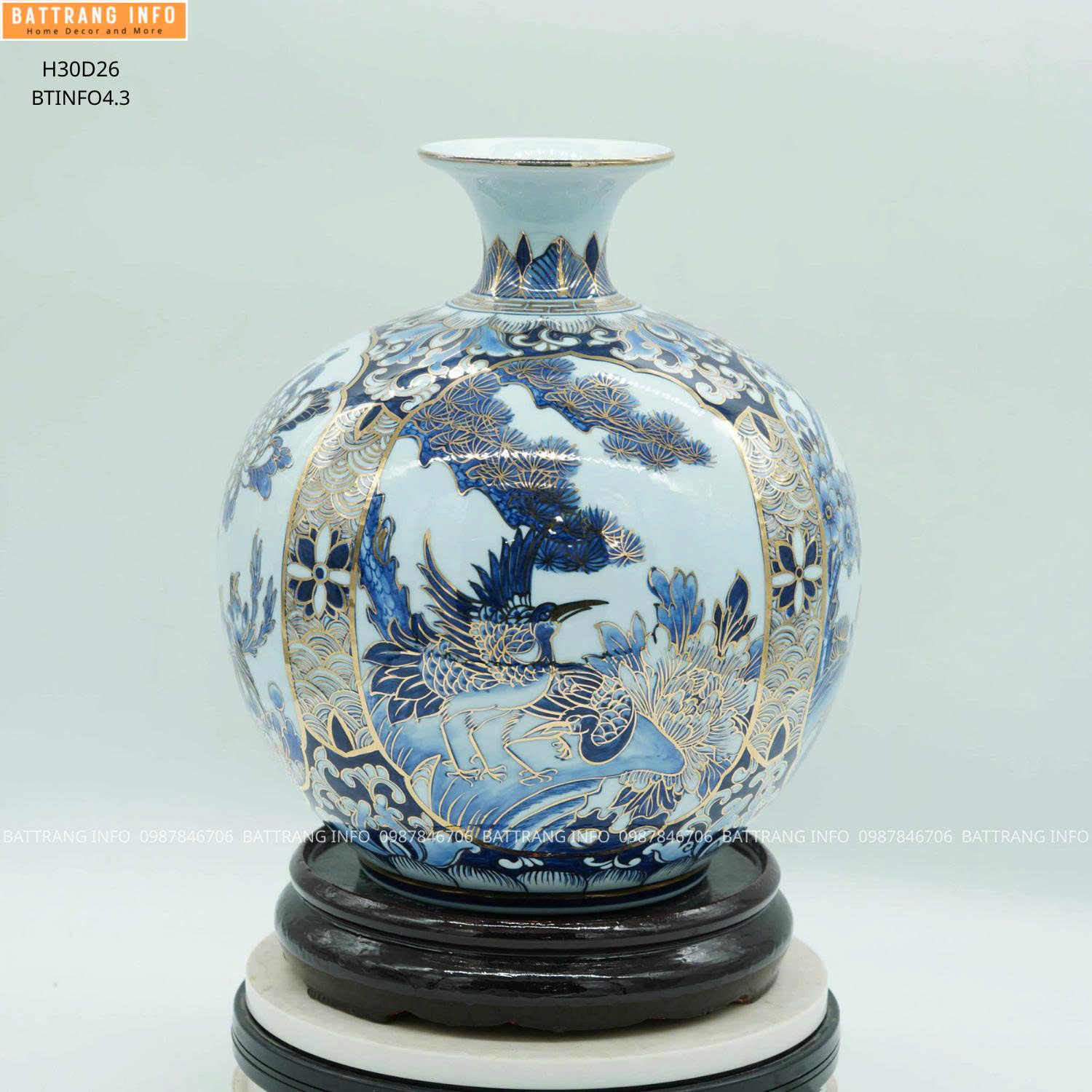 Bình hút tài lộc tứ cảnh men lam vẽ vàng 24K cao 30cm là lựa chọn hoàn hảo cho: