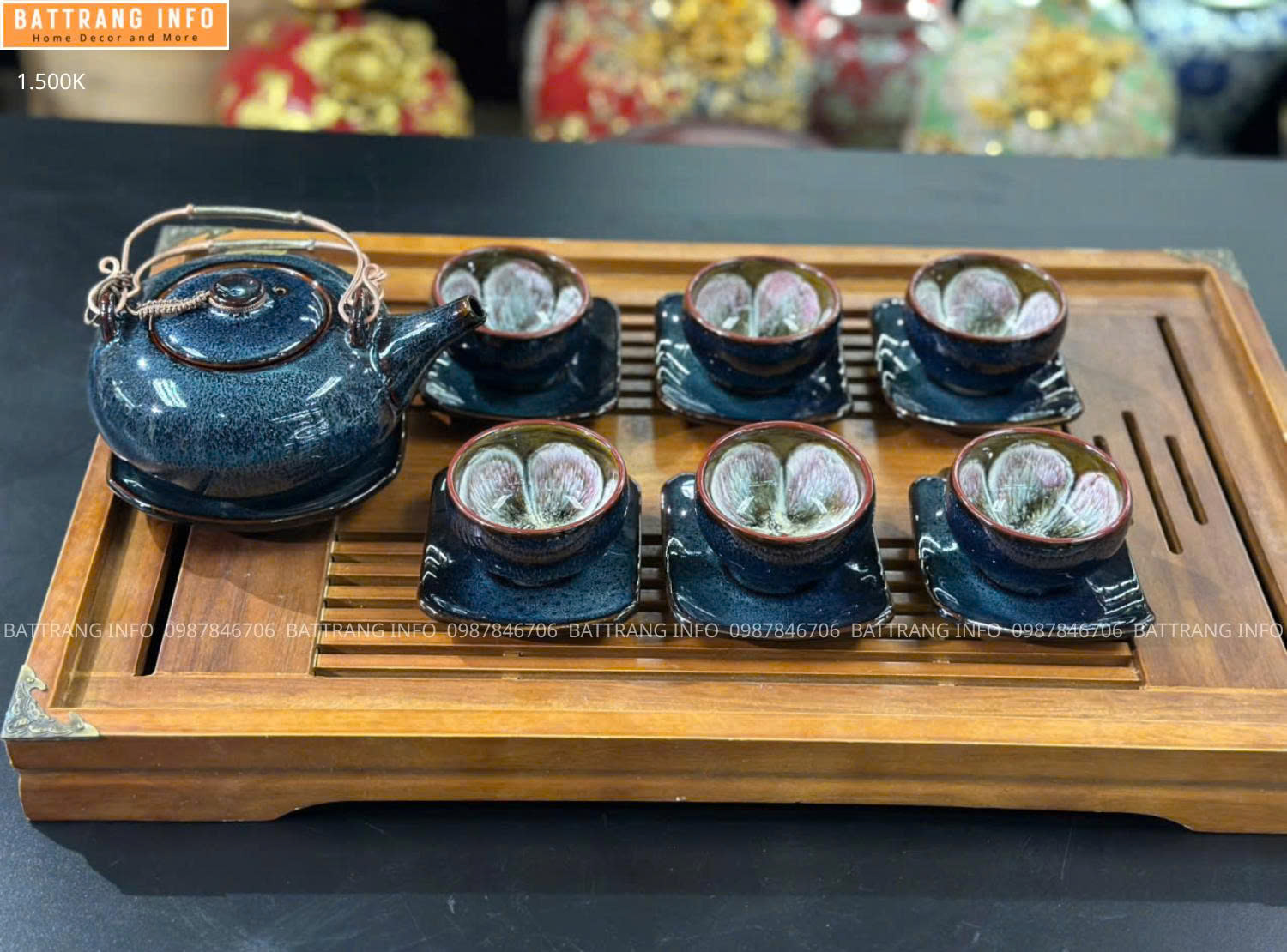 Bộ ấm chén men hoả biến cao cấp Bát Tràng là một trong những dòng sản phẩm gốm sứ nghệ thuật độc đáo và tinh xảo nhất đến từ làng gốm Bát Tràng – nơi có truyền thống hơn 700 năm làm gốm tại Việt Nam. Sự kết hợp giữa kỹ thuật nung lửa truyền thống và men hoả biến hiện đại đã tạo nên những sản phẩm ấm chén có màu sắc độc đáo, không cái nào giống cái nào, mang đậm dấu ấn cá nhân và phong cách nghệ thuật.