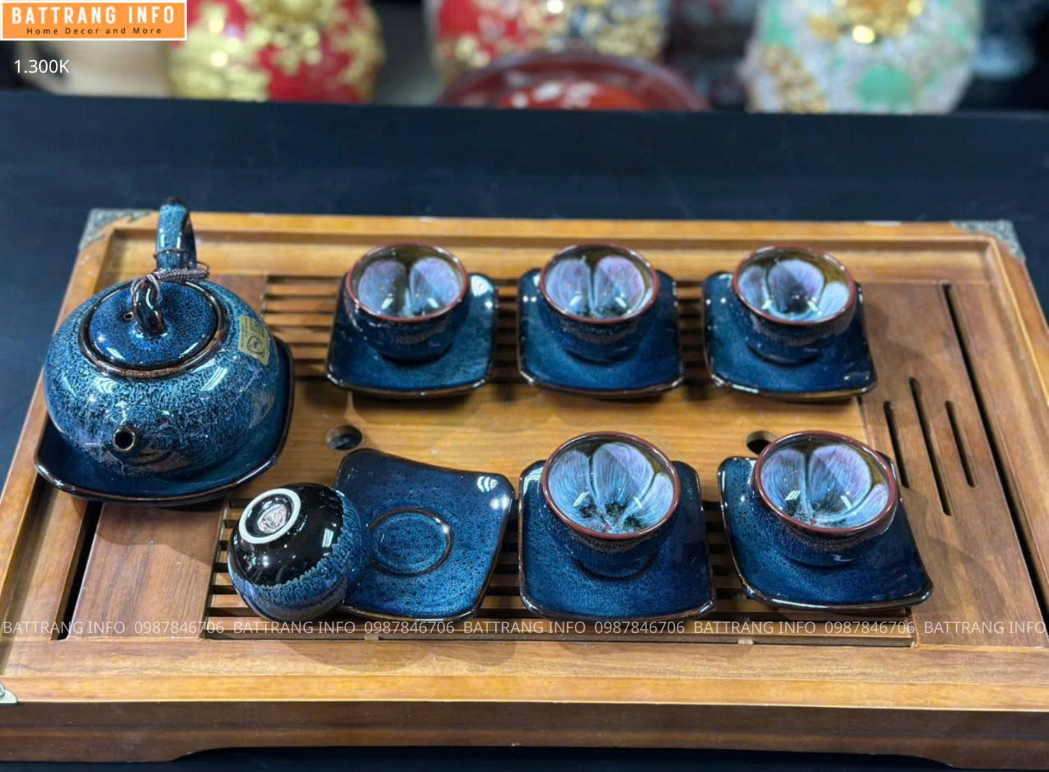 Bộ ấm chén men hoả biến cao cấp Bát Tràng là một trong những dòng sản phẩm gốm sứ nghệ thuật độc đáo và tinh xảo nhất đến từ làng gốm Bát Tràng – nơi có truyền thống hơn 700 năm làm gốm tại Việt Nam. Sự kết hợp giữa kỹ thuật nung lửa truyền thống và men hoả biến hiện đại đã tạo nên những sản phẩm ấm chén có màu sắc độc đáo, không cái nào giống cái nào, mang đậm dấu ấn cá nhân và phong cách nghệ thuật.