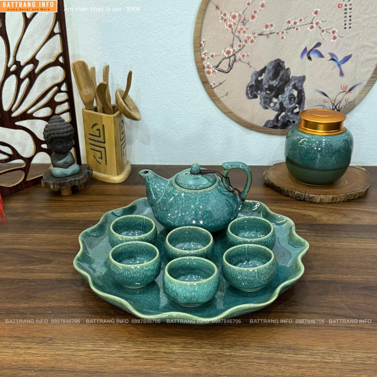 Bộ ấm chén men hoả biến khay lá sen cao cấp Bát Tràng - Sự kết hợp hoàn hảo giữa nghệ thuật và tinh tế