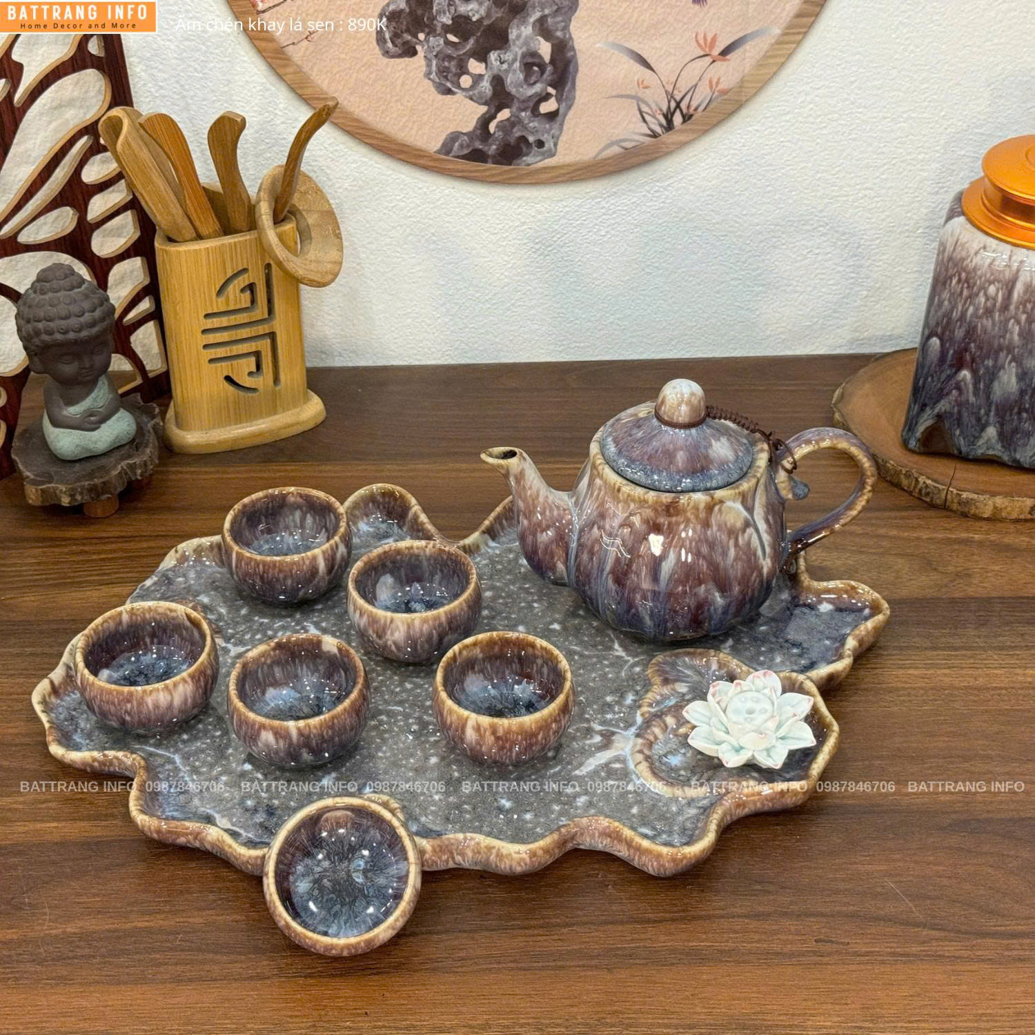 Bộ ấm chén men hoả biến khay lá sen cao cấp Bát Tràng - Sự kết hợp hoàn hảo giữa nghệ thuật và tinh tế