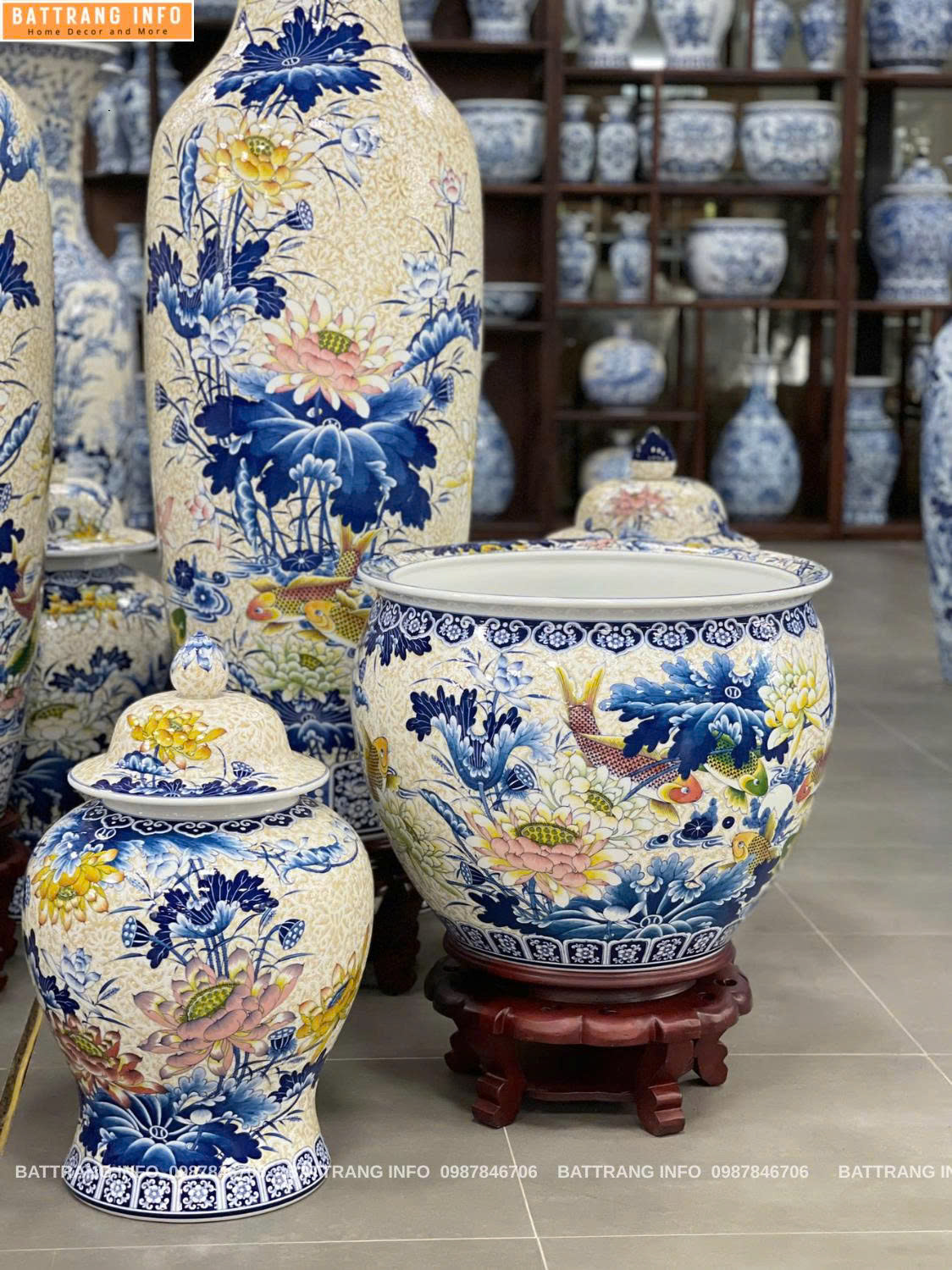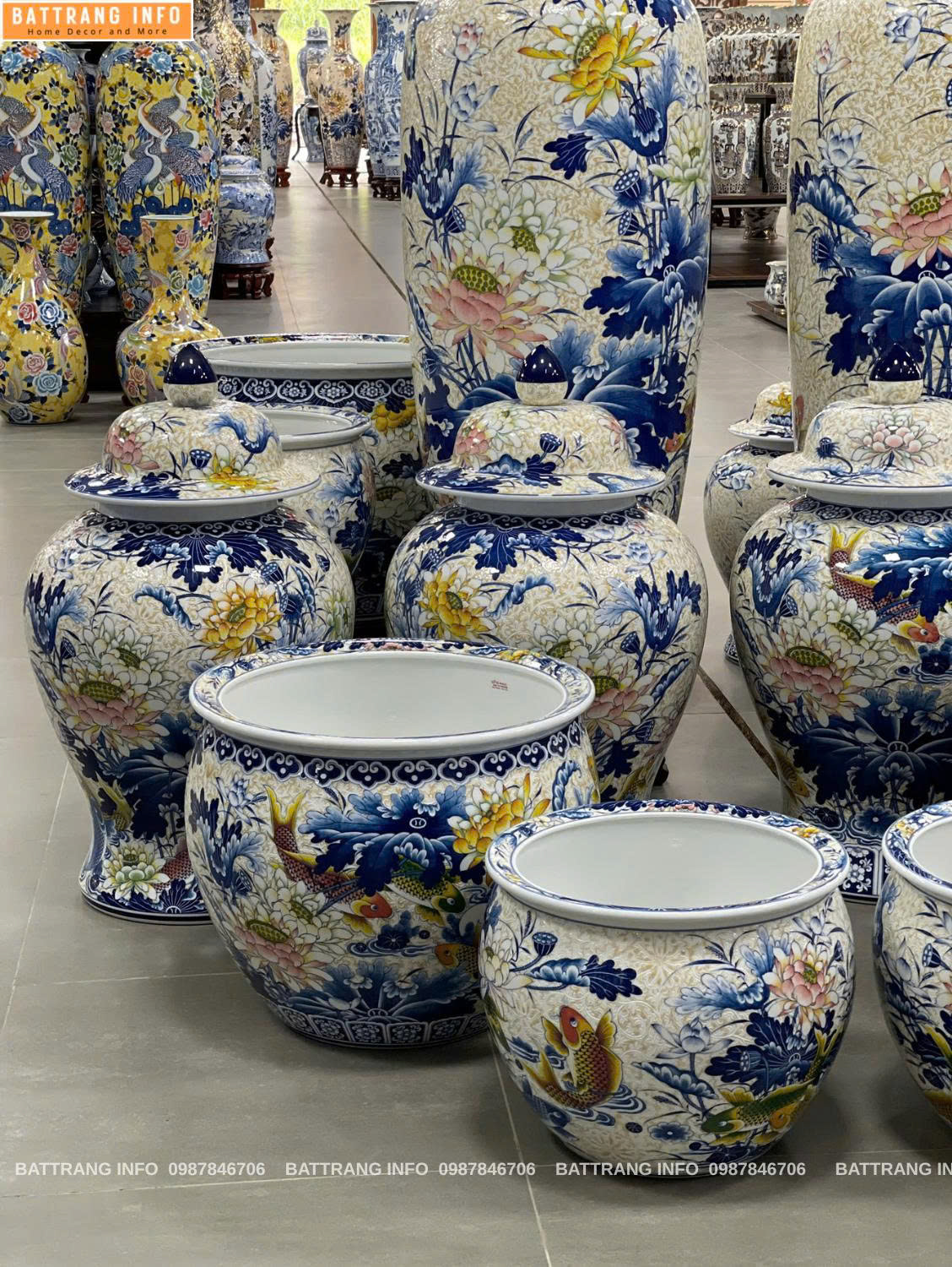 Thống gốm sứ Bát Tràng (hay còn gọi là chum, hũ gốm) trong bộ ba sản phẩm này thường được dùng để trưng bày hoặc làm vật phẩm phong thủy. Điểm nổi bật: