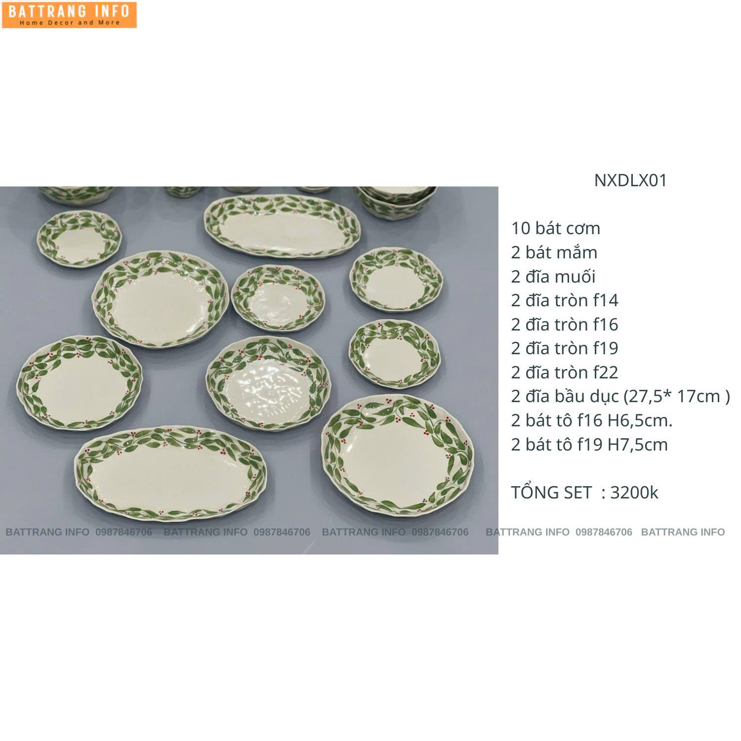 6. Hãy mua bộ bát đĩa dáng nặn vẽ tay xuất dư phong cách châu Âu họa tiết lá xanh Bát Tràng ở Gốm sứ Battrang.info nhé ?