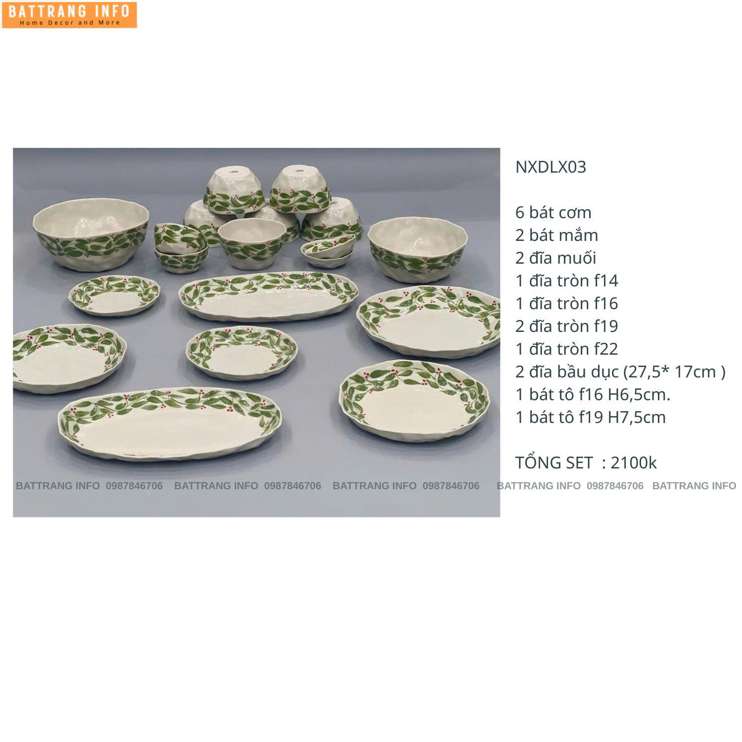 6. Hãy mua bộ bát đĩa dáng nặn vẽ tay xuất dư phong cách châu Âu họa tiết lá xanh Bát Tràng ở Gốm sứ Battrang.info nhé ?