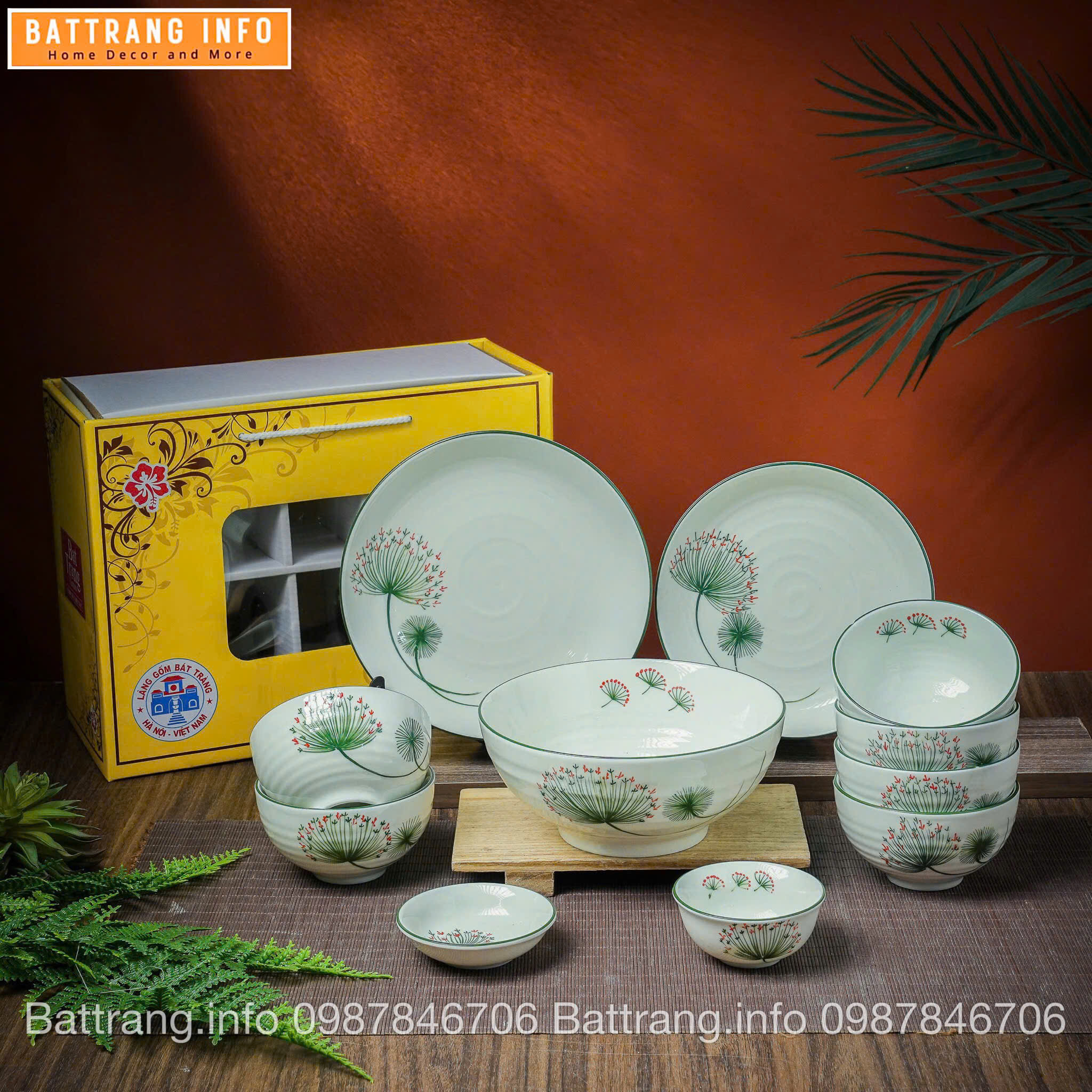 Bộ Bát Đĩa Quà Tặng Cao Cấp Bát Tràng _ Bồ Công Anh