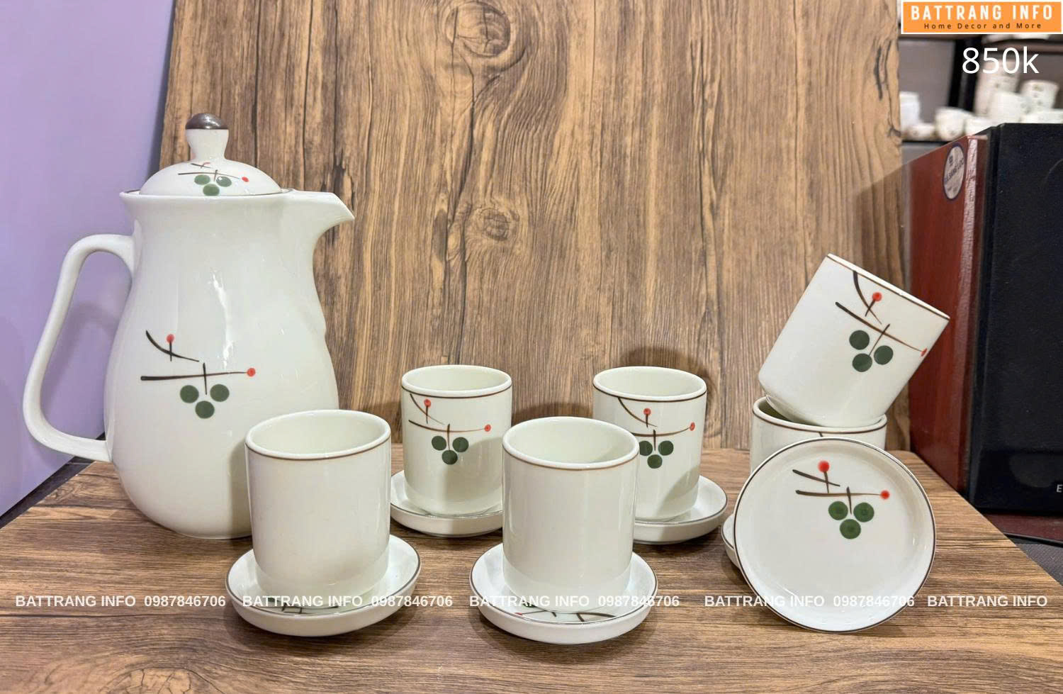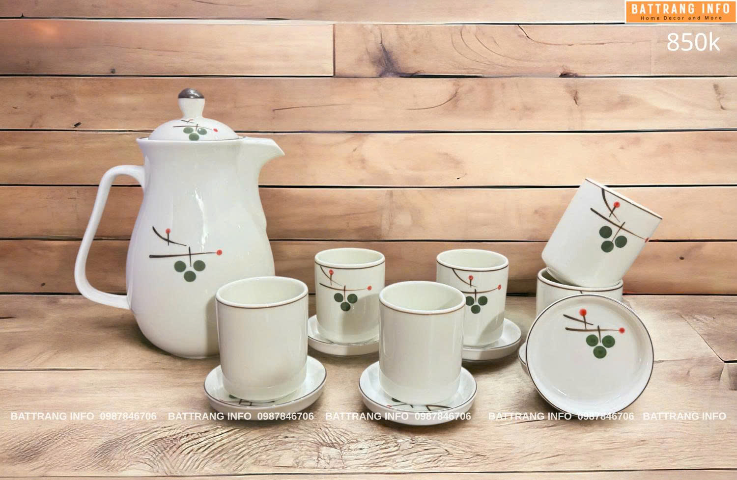 - Thiết kế sang trọng – tinh tế Mỗi bộ bình là một tác phẩm nghệ thuật với họa tiết được vẽ hoàn toàn thủ công. Màu men và nước vẽ được xử lý theo công nghệ nung nhiệt độ cao, giúp bền màu theo thời gian.