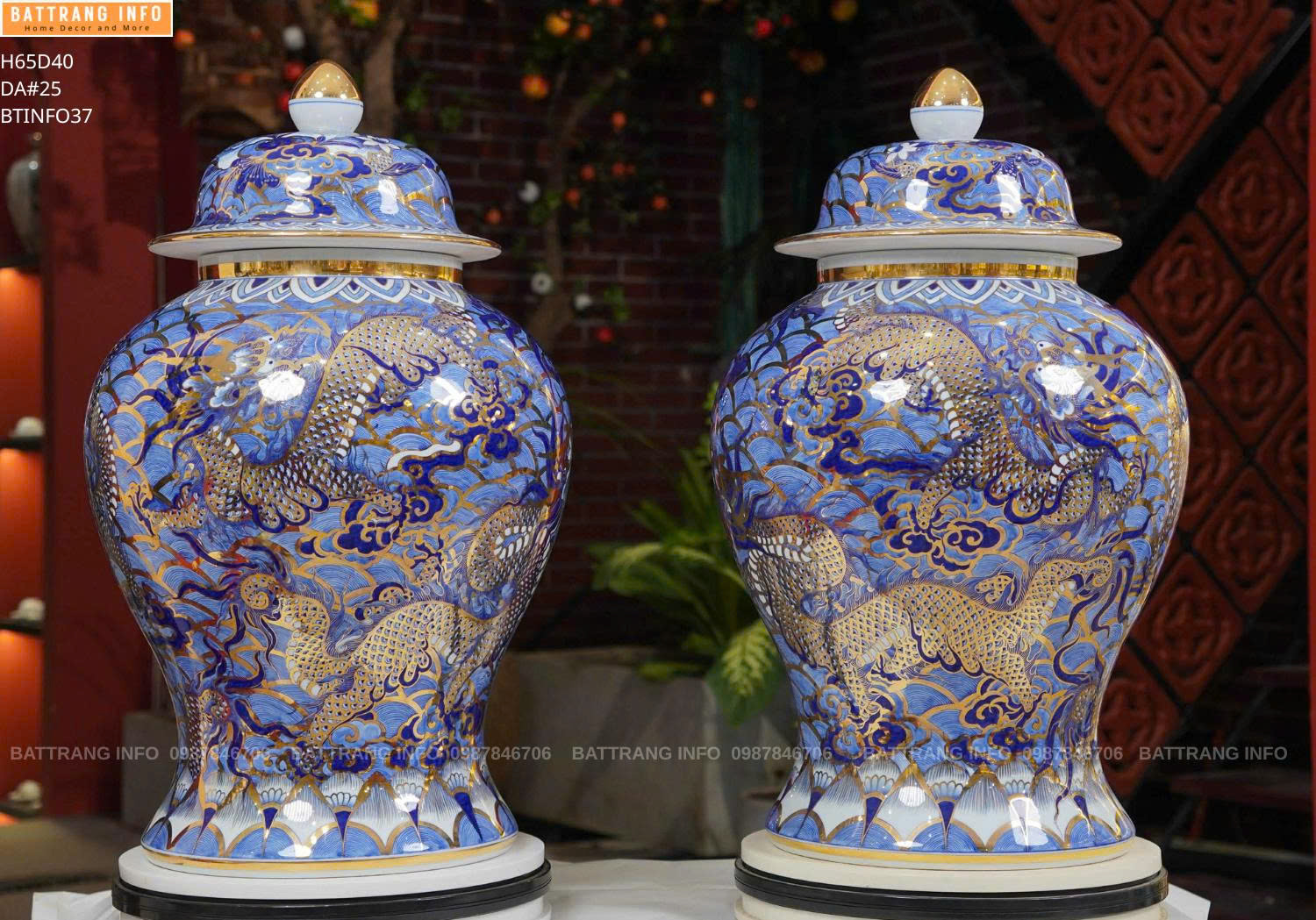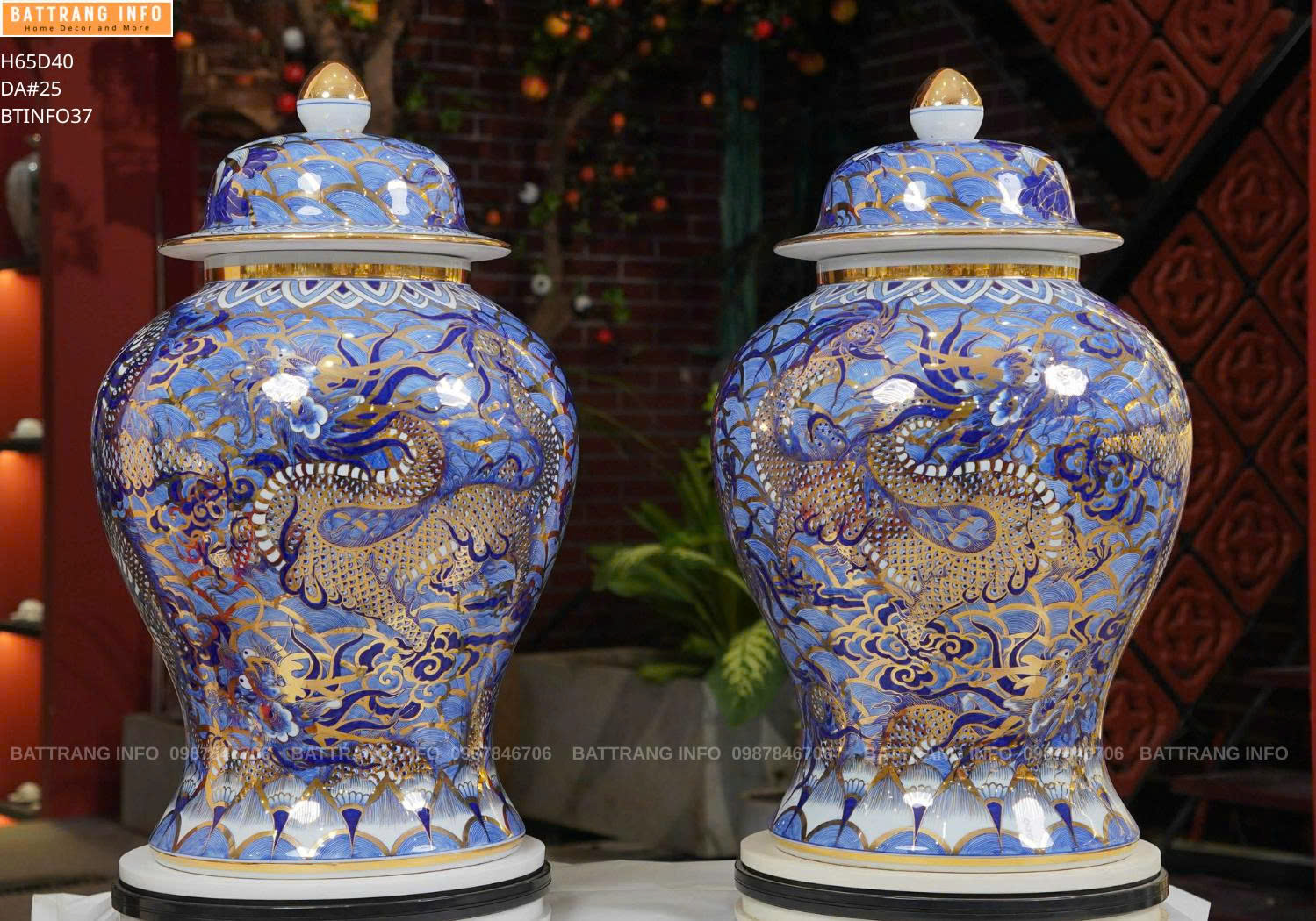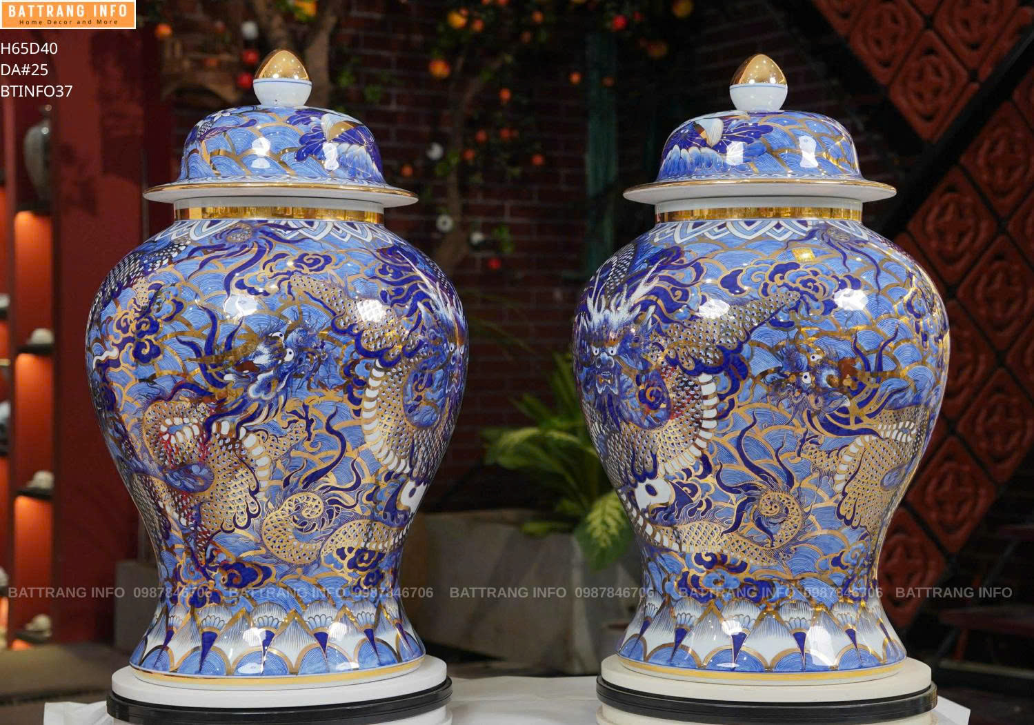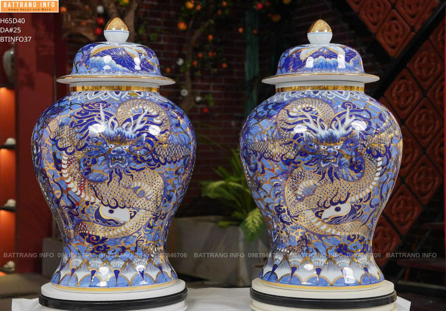 Cặp choé Ngũ Long Khuấy Thủy 65cm vẽ vàng 24K là biểu tượng của quyền lực – tài lộc – sang trọng, xứng đáng có mặt trong không gian sống và làm việc của những khách hàng yêu sự tinh tế và đẳng cấp.