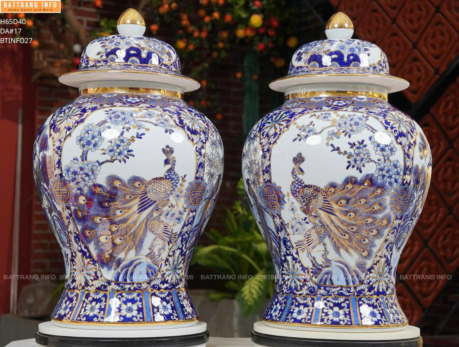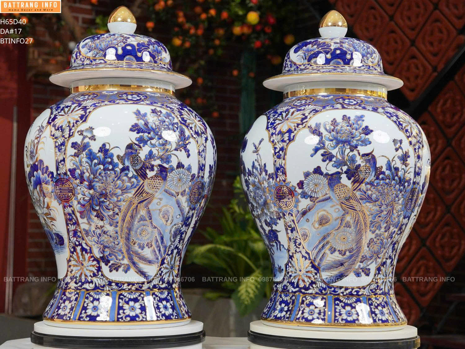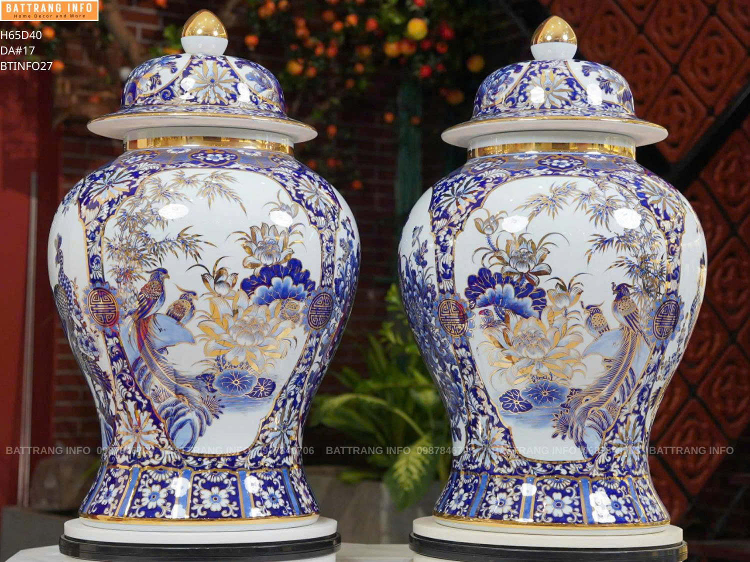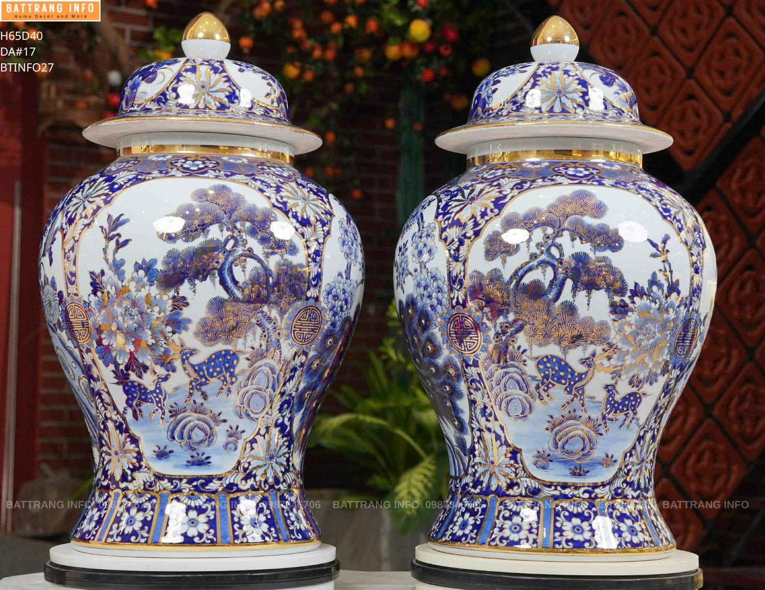 Choé Tứ Cảnh Nền 3D Vẽ Vàng 24k Cao 65cm – Tuyệt Tác Gốm Sứ Cao Cấp Bát Tràng