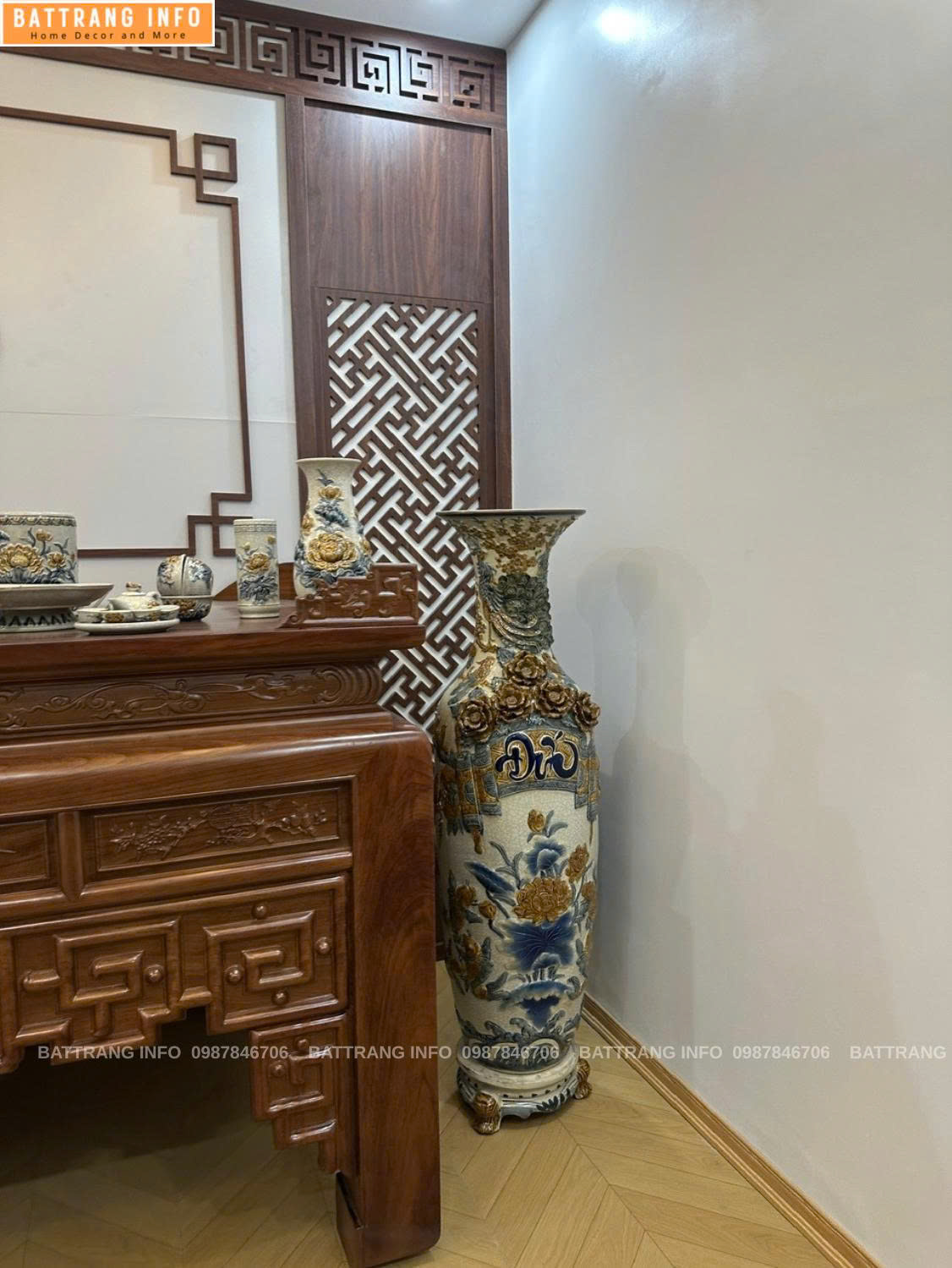 Cặp lộc bình đi kèm cao 1m4 ( thêm đế sứ 15cm là 1m55), phù hợp với không gian phòng thờ gia tiên hoặc phòng thờ Phật.