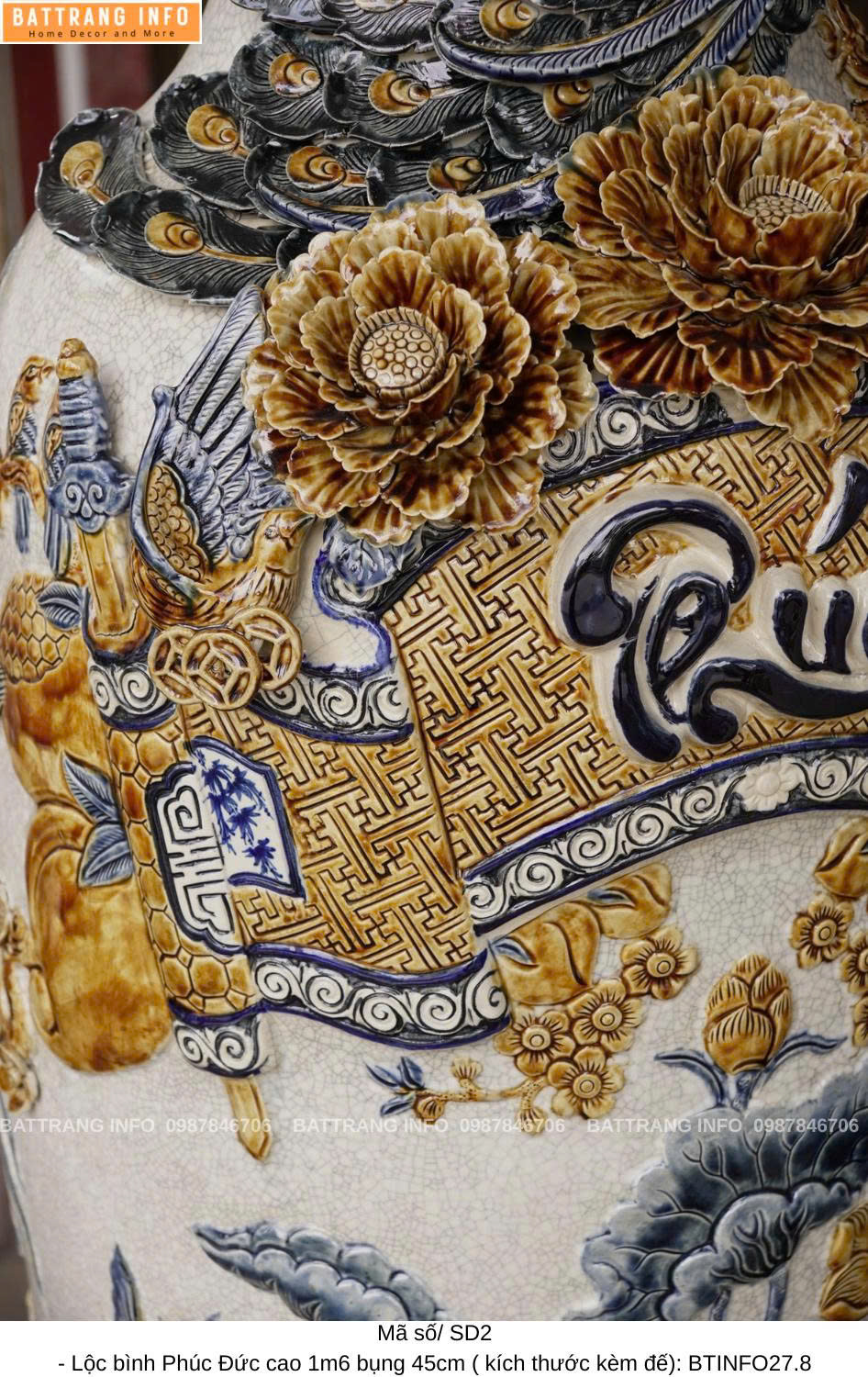 Kích thước: • Lộc Bình Phúc Đức: Cao 1m6, đường kính ~45cm