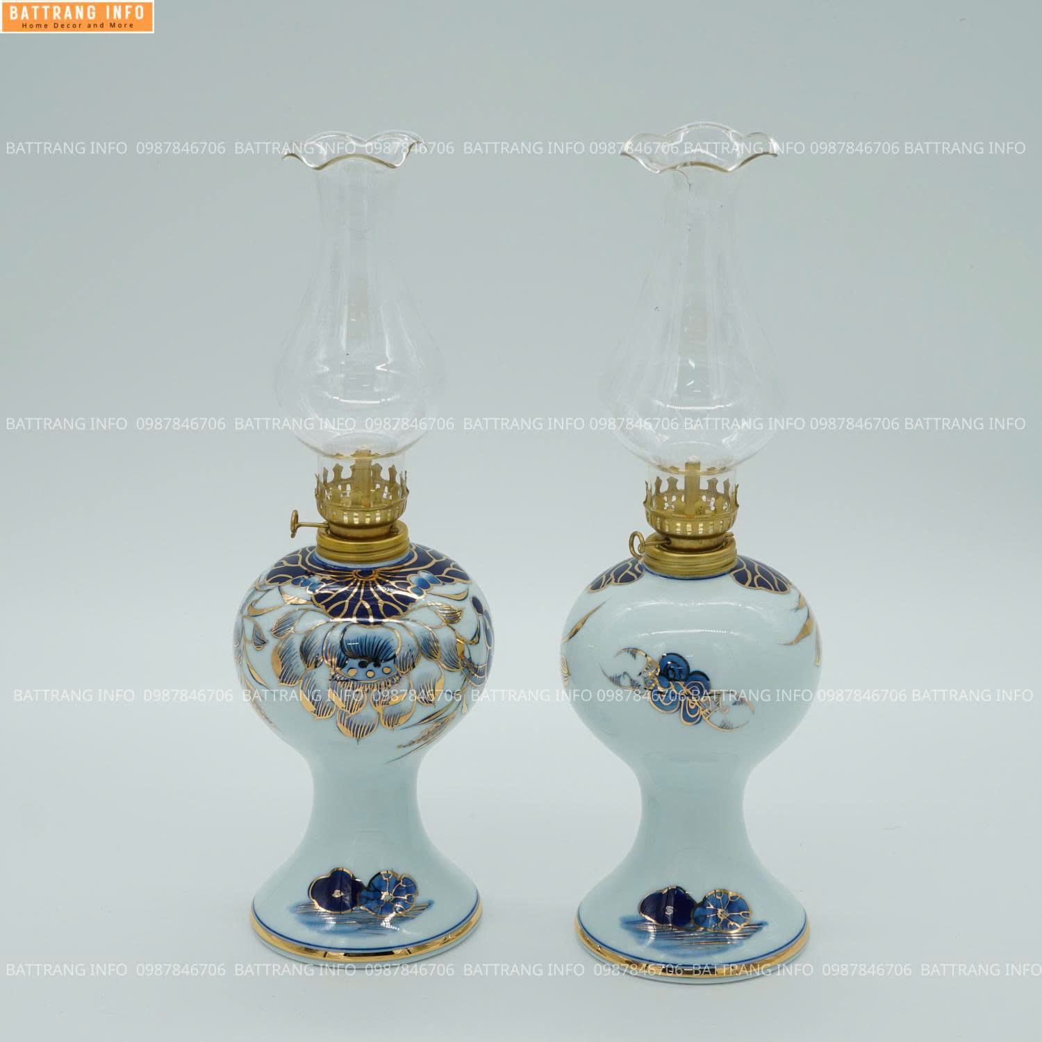 Ý Nghĩa Đèn Dầu Men Lam Vẽ Vàng 24K Cao Cấp Bát Tràng Trên Bàn Thờ