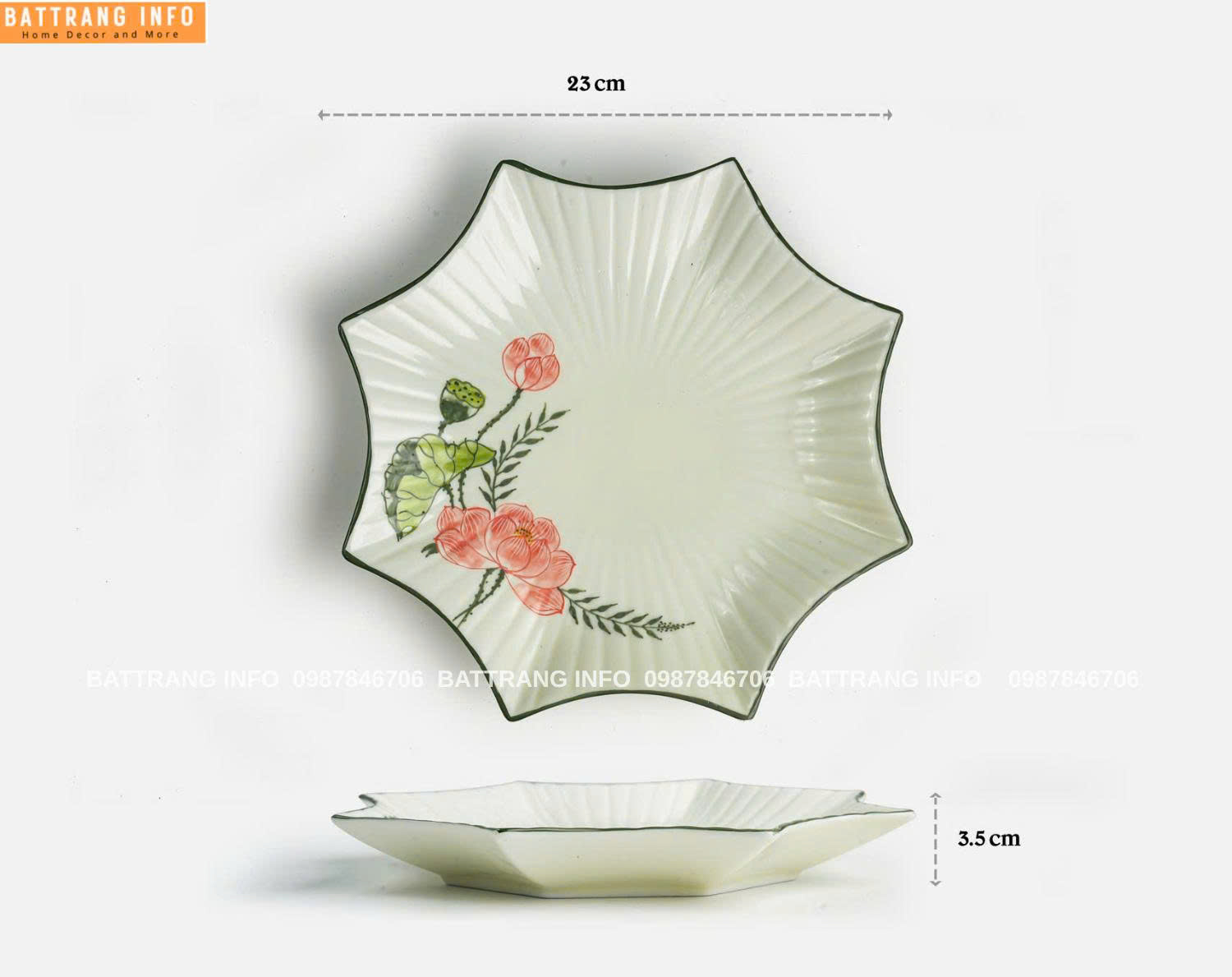 2. Thiết kế tinh tế, mang đậm hồn Việt Họa tiết hoa sen hồng – biểu tượng của sự thanh cao, thuần khiết và may mắn – được nghệ nhân Bát Tràng khéo léo đưa lên từng sản phẩm bằng kỹ thuật vẽ tay truyền thống. Các chi tiết đều được chăm chút tỉ mỉ, tạo nên sự hài hòa giữa màu sắc và hình khối.