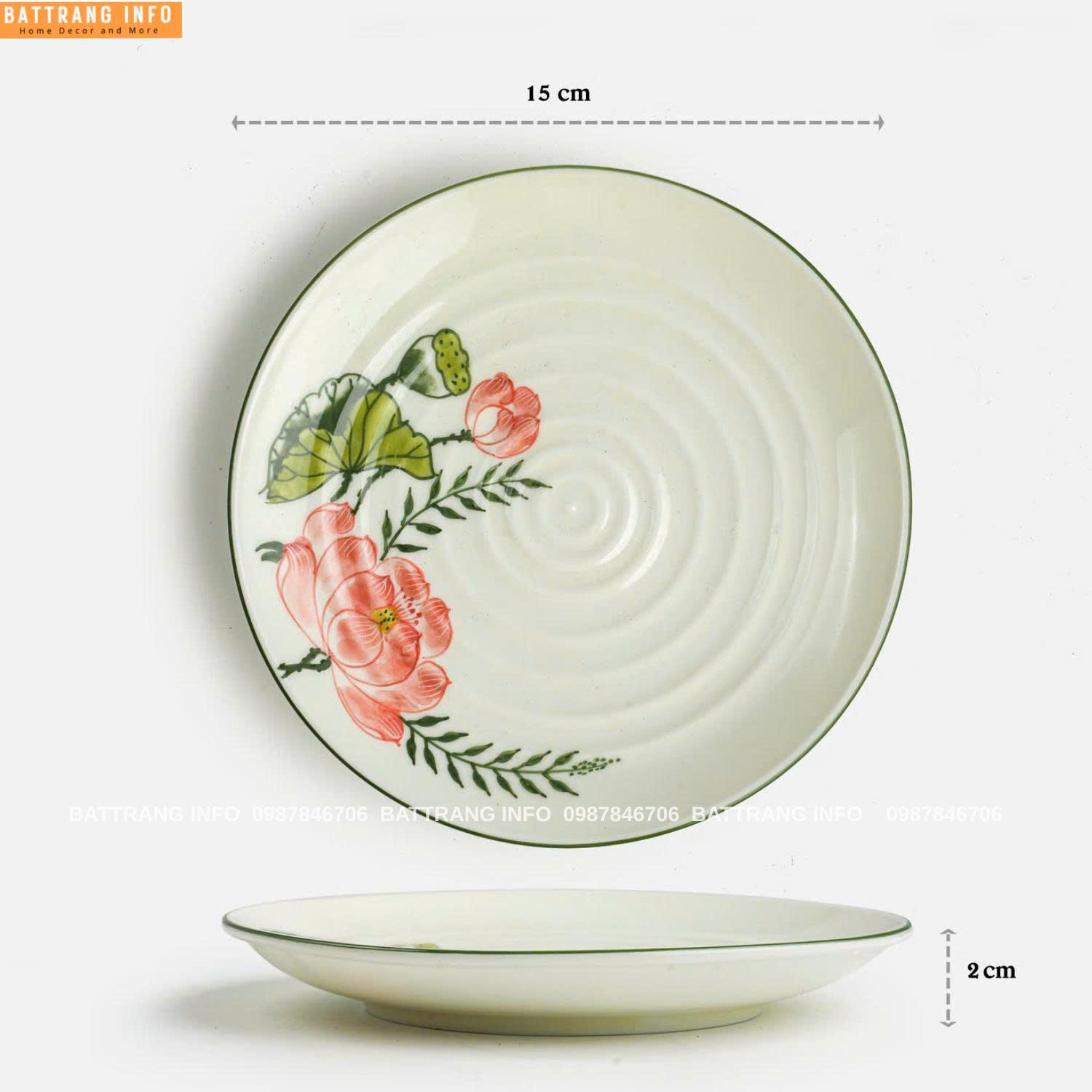 2. Thiết kế tinh tế, mang đậm hồn Việt Họa tiết hoa sen hồng – biểu tượng của sự thanh cao, thuần khiết và may mắn – được nghệ nhân Bát Tràng khéo léo đưa lên từng sản phẩm bằng kỹ thuật vẽ tay truyền thống. Các chi tiết đều được chăm chút tỉ mỉ, tạo nên sự hài hòa giữa màu sắc và hình khối.