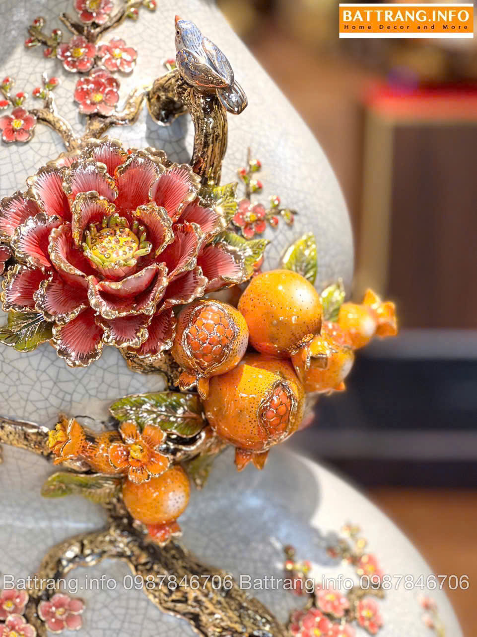 • Màu sắc chủ đạo: Nền men rạn cổ/vàng kim (tùy mẫu)