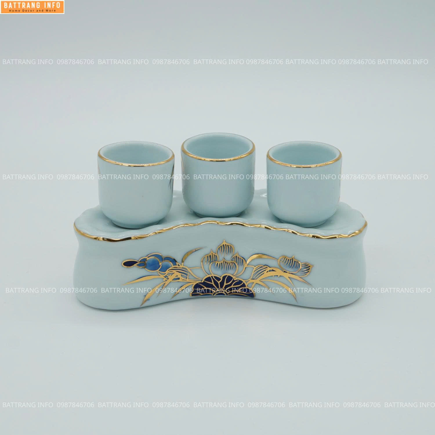 Ý Nghĩa Kỷ Cong 3 Chén Men Lam Vẽ Vàng 24K Cao Cấp Bát Tràng