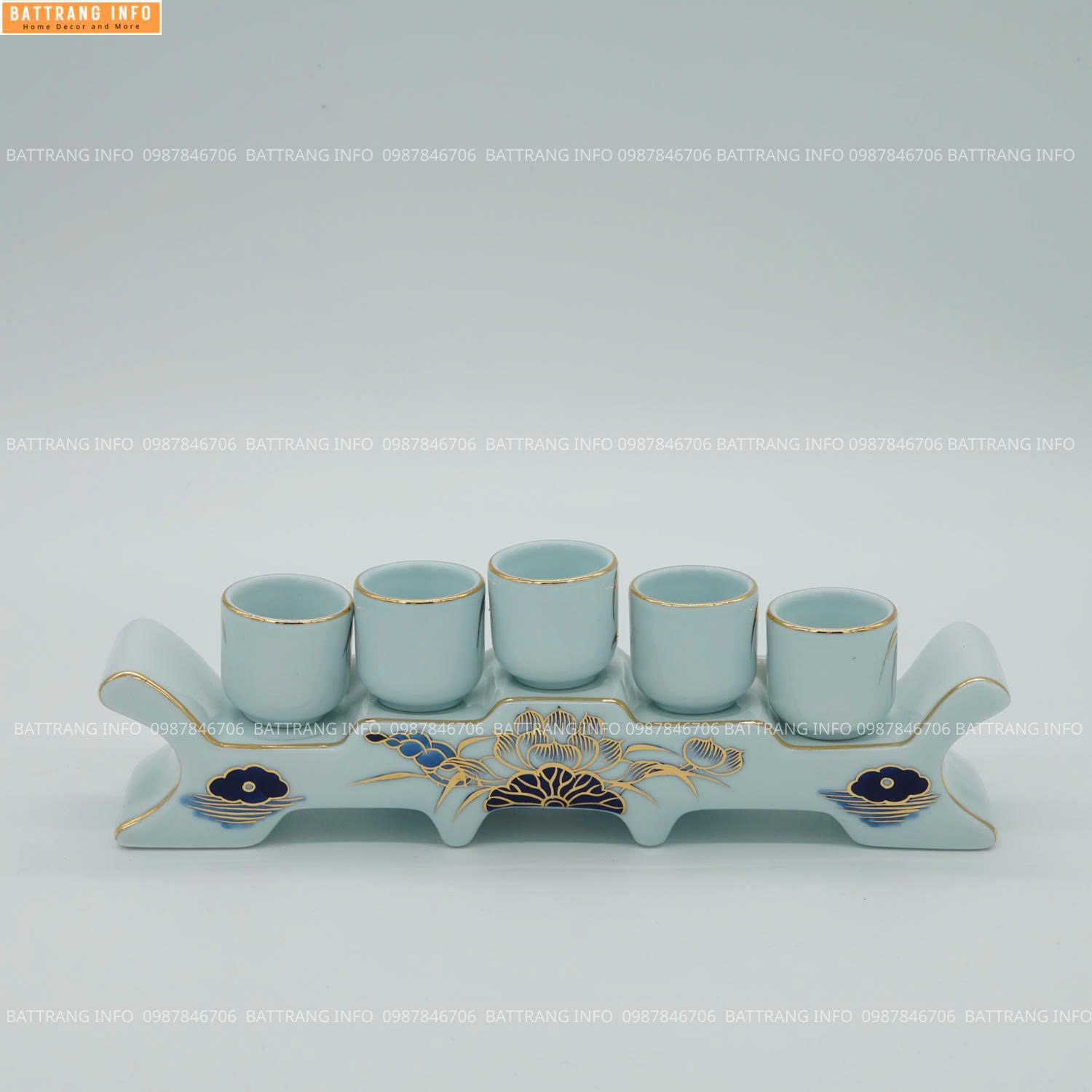 Ý nghĩa kỷ ngai 5 chén men lam vẽ vàng 24K cao cấp Bát Tràng trên bàn thờ