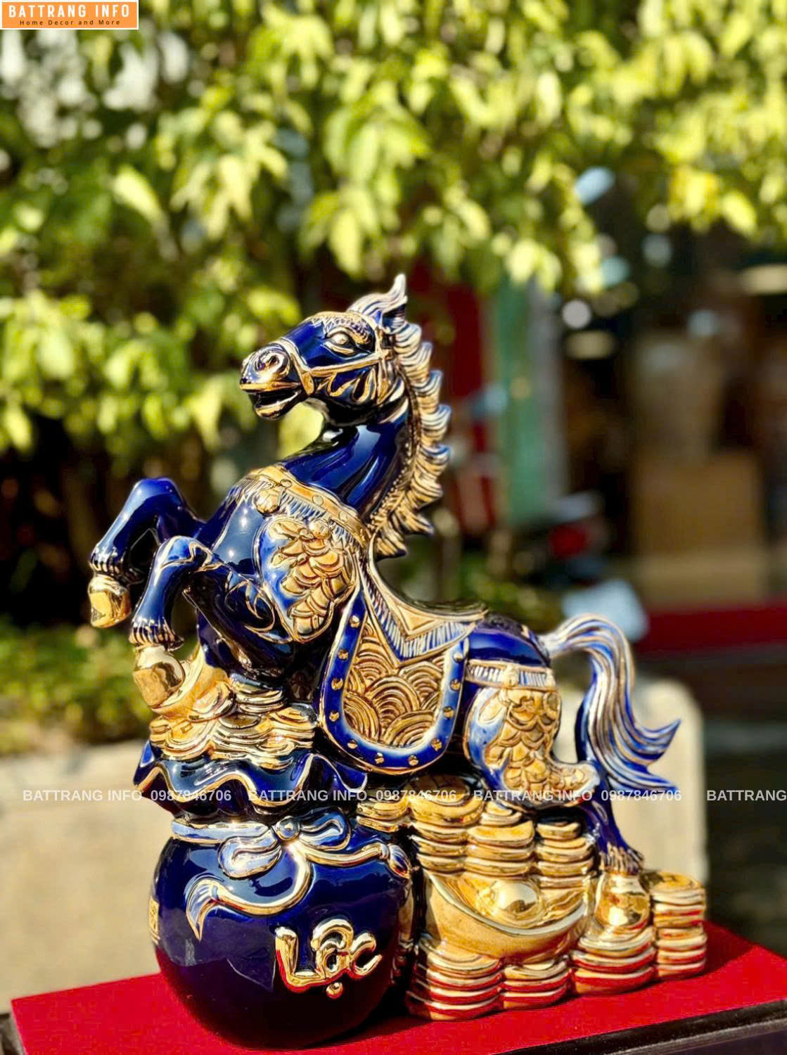 Sứ Bát Tràng nổi tiếng với độ bền cao, nước men sáng bóng và kỹ thuật chế tác tinh xảo. Khi kết hợp cùng vàng 24k, linh vật ngựa trở thành một tác phẩm phong thủy cao cấp, mang giá trị trưng bày và giá trị tâm linh vượt trội: